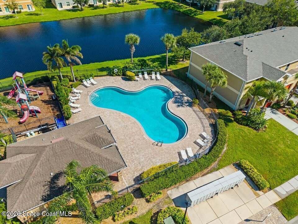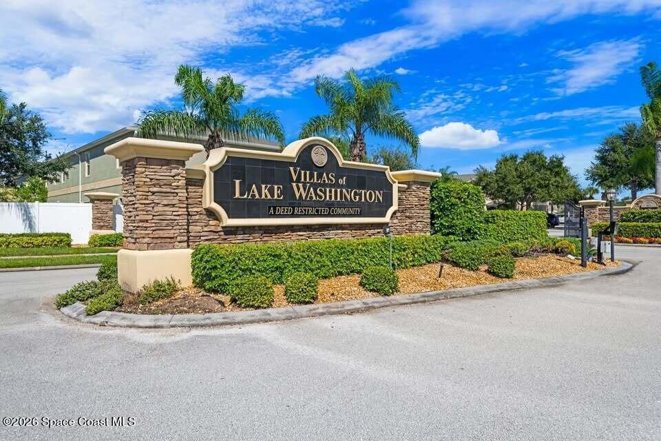 Beautifully maintained townhome in the desirable gated community of Villas of Lake Washington in Melbourne. The main level features an open-concept living and dining area with tile flooring, a kitchen with granite countertops, breakfast bar, and lots cabinet space, plus a convenient half bath downstairs. Upstairs you'll find all bedrooms together with the laundry on the same level, and a comfortable primary suite with walk-in closet. Step outside to a low-maintenance outdoor space with a peaceful view toward the wooded area across the road, perfect for relaxing and enjoying a bit of privacy. Residents enjoy community amenities including a pool, playground, and gated entry. The HOA covers exterior maintenance, roof, lawn care, plus cable and internet,making this a true lock-and-leave lifestyle. The home is currently tenant-occupied through the end of April, making it a great option for an investor seeking a low-maintenance rental, while also offering flexibility for an owner-occupant.