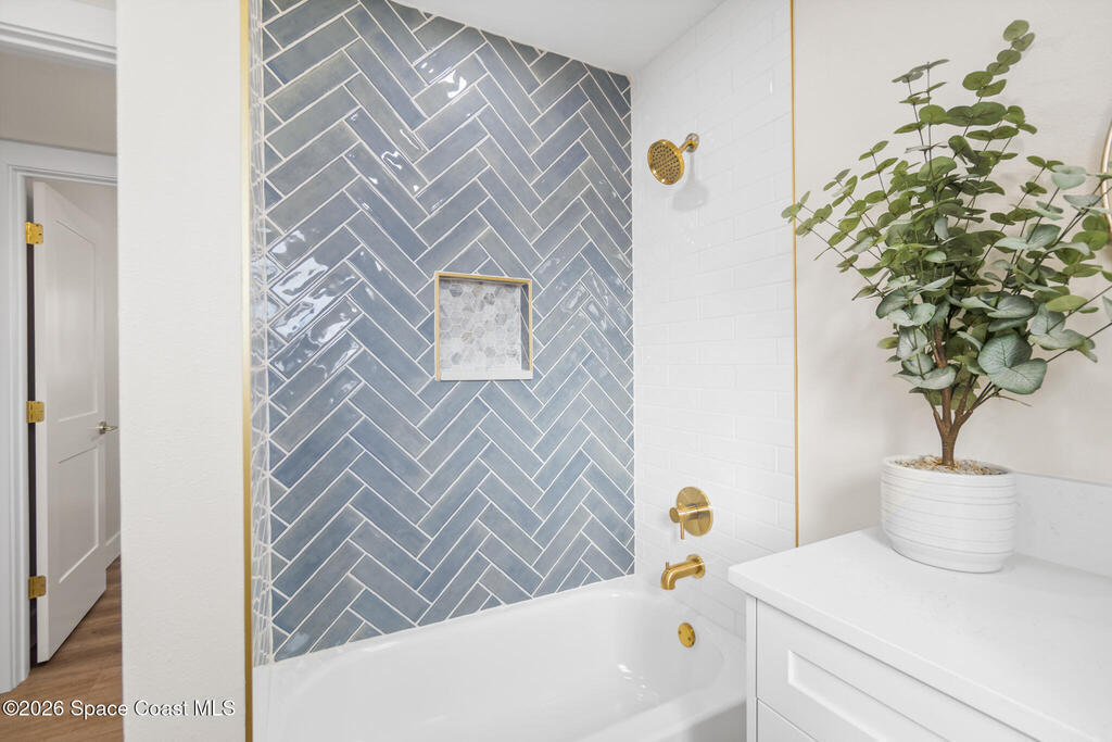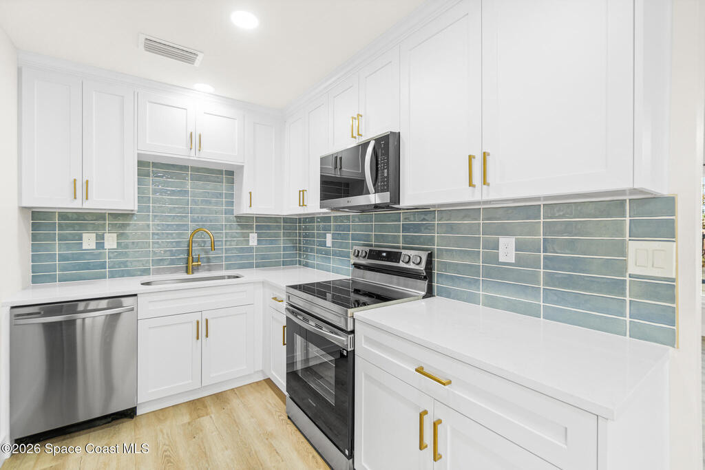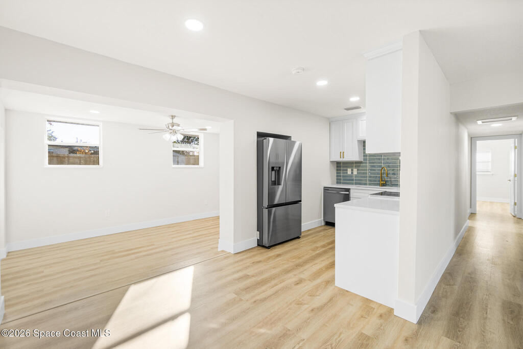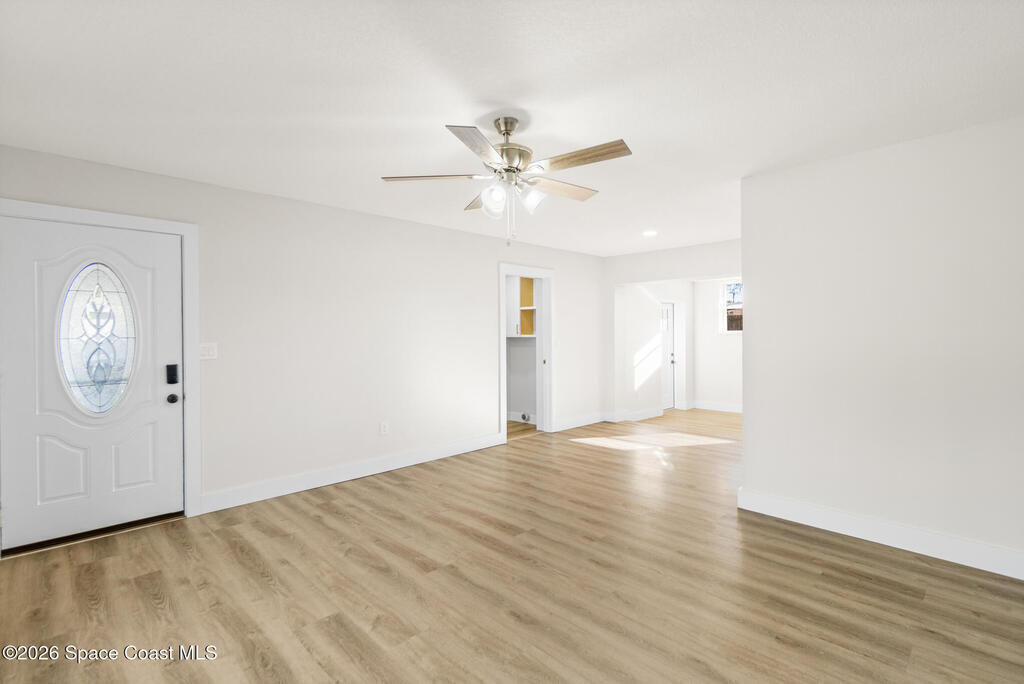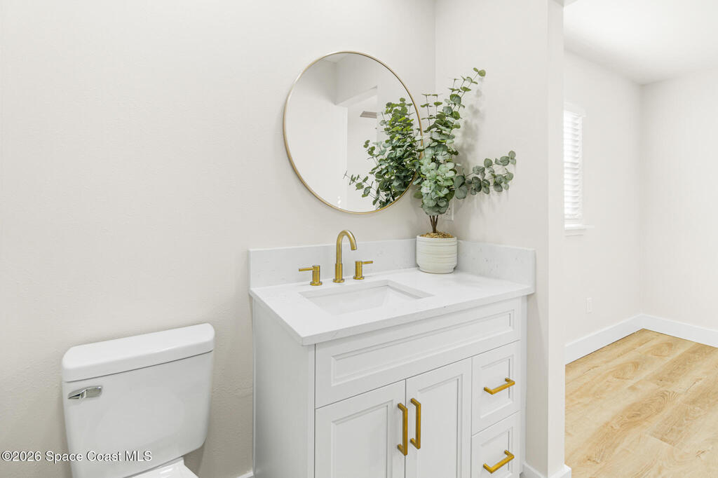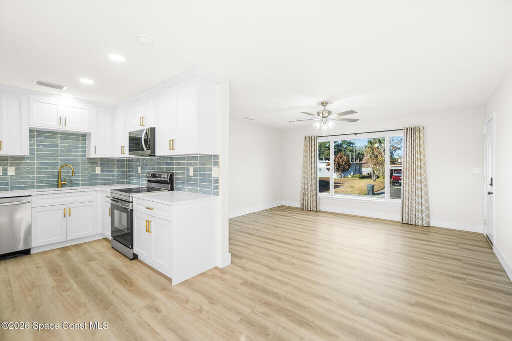 Looking for a quality custom home in Titusville that is sure to impress your friends & family? Look no further! This custom home shows like a model and is full of updates inside and out. The inside features 3 bedrooms, 2.5 bathrooms, laundry room, upgraded plank floors throughout, LED lighting, new interior paint throughout, upgraded baseboards, custom kitchen, and bathrooms. The kitchen features white shaker cabinets, quartz countertops, custom backsplash, gold handles, and upgraded stainless steel appliances. The bathrooms feature white shaker cabinets, quartz countertops, and custom tile showers. The outside features new exterior paint, NEW wood fence, custom wood accents, and a large storage shed. No HOA restrictions. NEW roof, NEW plumbing (no cast iron) NEW electric, New water heater, 2023 AC, and a 2018 septic system.