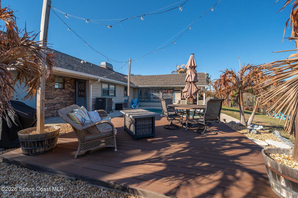 Blissful Waterfront Retreat on Turkey Creek -Welcome to your private waterfront sanctuary nestled along the scenic shores of Turkey Creek in Palm Bay. Perfectly positioned just 15 minutes to downtown and area beaches, this beautifully upgraded 4-bedroom plus office, 3-bath estate offers the rare combination of tranquility, recreation, and income potential.Spanning approximately 2,375 square feet on an expansive .41-acre lot, this open-concept home is designed to capture breathtaking panoramic water views. A striking double-sided fireplace anchors the main living areas, while the chef-inspired kitchen flows seamlessly into generous gathering spaces ideal for entertaining.Step outside into your own resort-style backyard oasis featuring a private pool, multiple conversation patios, propane fire pit, gas BBQ, and a private dock along a navigable canal with direct access to Turkey Creek. Launch your kayak or paddleboard from your backyard, fish from your your private coquina pebble