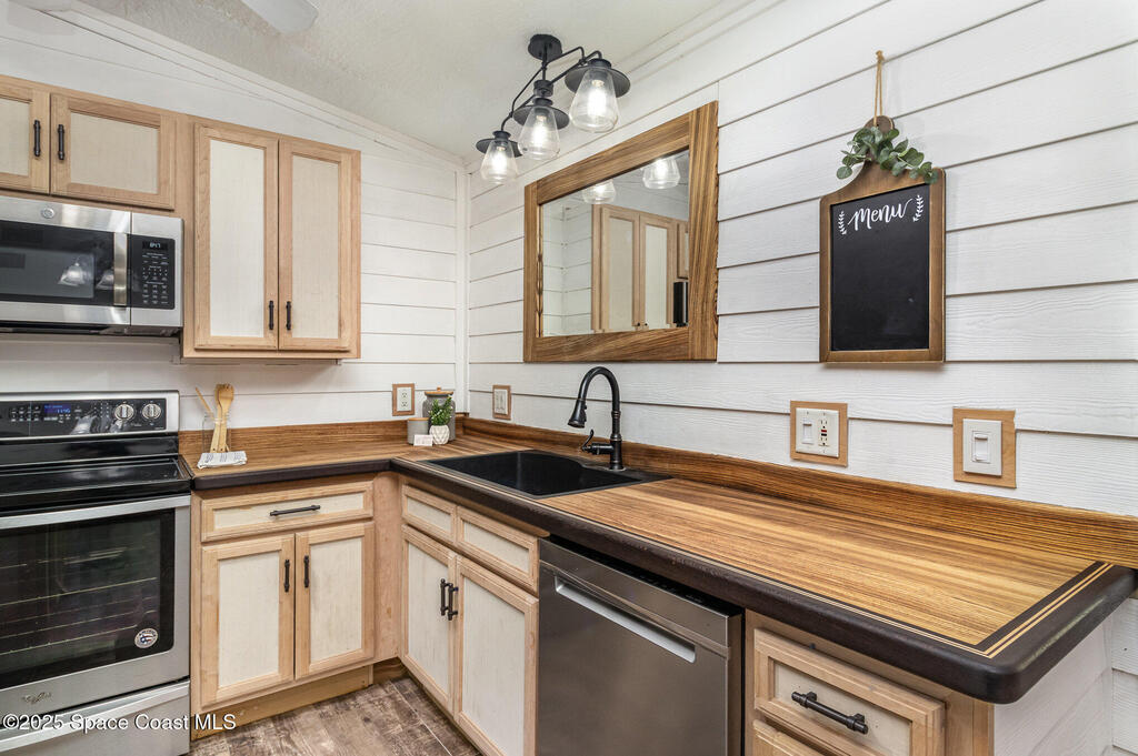 This property comes with a 0.24-acre lot of land behind the home, bringing the total combined acreage to 0.48 acres--offering incredible potential for expansion, outdoor living, or development. Located in the rapidly growing city of Palm Bay, this meticulously remodeled home blends modern luxury with functionality. Built with solid block construction and impact-rated windows, it ensures durability and security. The open floor plan features a spacious great room that separates the expansive master suite from the three additional bedrooms and bonus room. Custom woodwork and stunning finishes throughout, including Zebrawood and Wenge countertops, elevate the design. The kitchen boasts a large island with a veggie sink and ample space for a dining table.