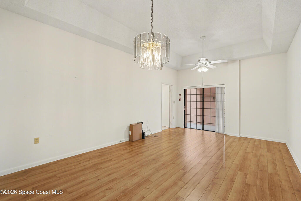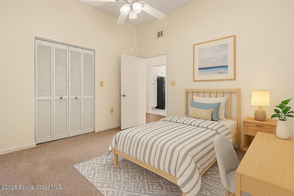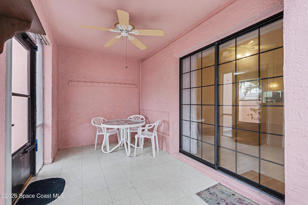 Beautiful 2-bedroom, 2-bath condo offering convenient ranch‑style living in a highly desirable Cocoa Beach location. This well‑maintained home features laminate flooring throughout most of the home, 10‑foot ceilings, and an inviting open layout that feels bright and spacious.The white kitchen includes updated appliances, plenty of cabinet space, and a clean, modern look. Enjoy Florida living on the large screened outdoor patio, perfect for relaxing, entertaining, or dining outside in comfort. 1 car detached private garage too!The association fee covers an impressive list of amenities, including water, sewer, trash, cable, and internet, pool, hot tub, dry sauna and landscaping offering excellent value and peace of mind.Located in a prime walkable area:- Stroll to the beach- Stroll to downtown Cocoa Beach for shops, dining, and entertainmentThis condo combines comfort, convenience, and coastal living -- truly a fantastic opportunity!