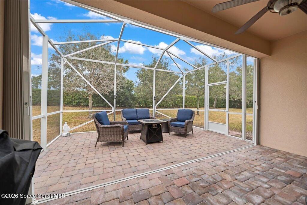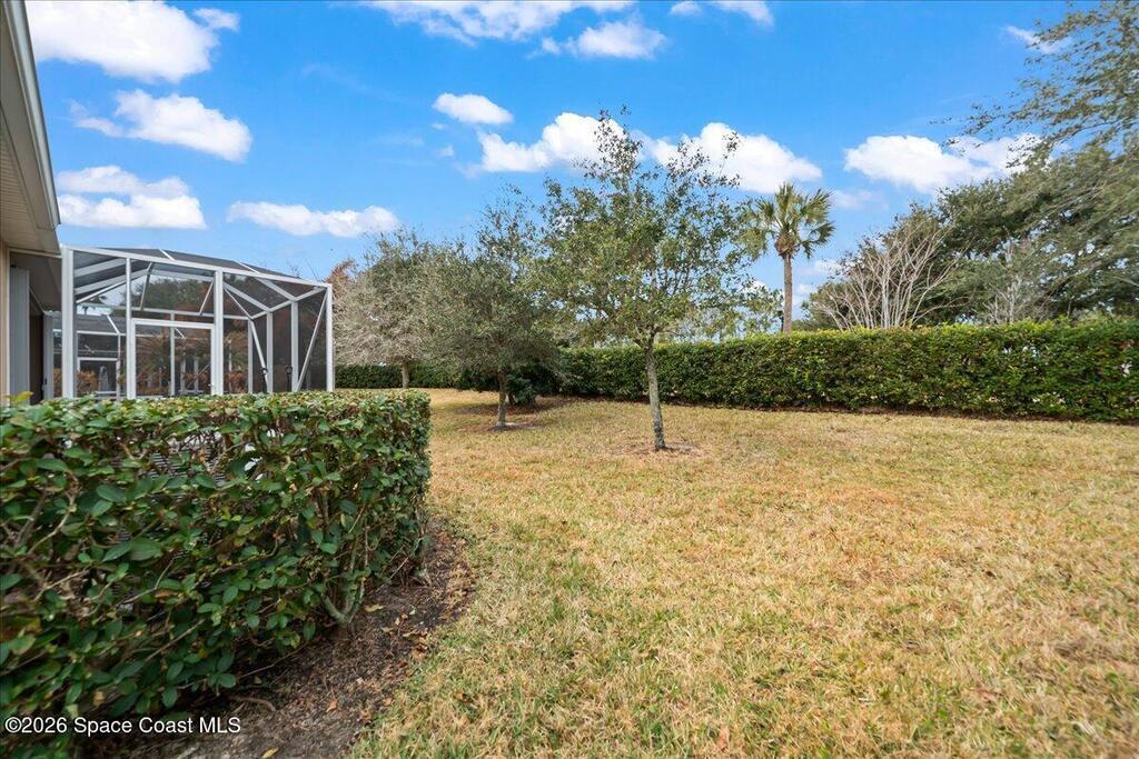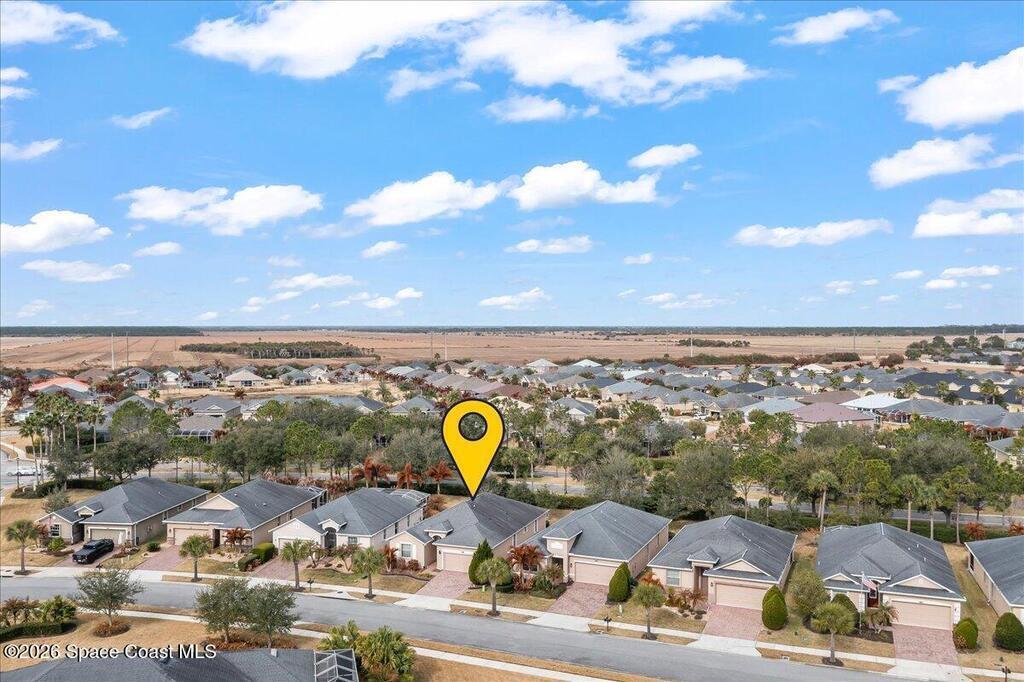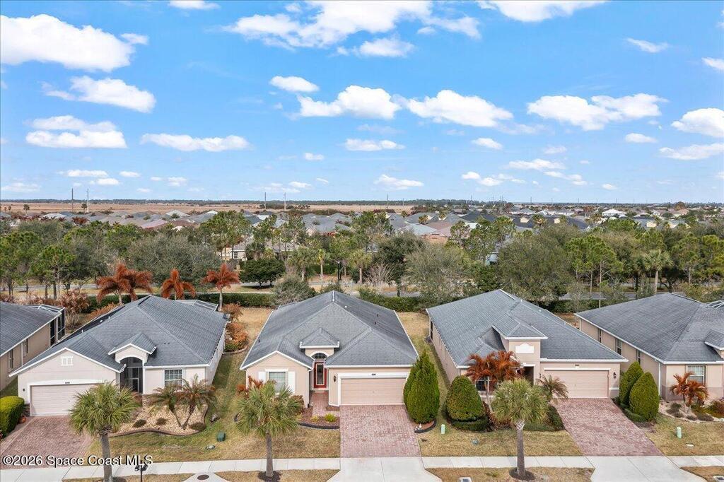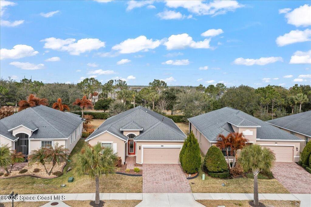 Welcome to one of Brevard County's premier active adult communities. This meticulously maintained Hamilton II model offers 3 bedrooms plus an office/den, 3 bathrooms, and a 2-car garage. Designed with comfort & elegance in mind, this home features 20'' tile flooring, crown molding, custom closet systems, & accordion hurricane shutters for added peace of mind. The kitchen features granite countertops, stainless steel appliances, tile backsplash, & expanded cabinetry for storage, perfect for everyday living & hosting. The primary suite is a true retreat with natural wood flooring, walk-in closets, and a spa-inspired bathroom with a frameless glass shower. Step outside to your paver lanai, fully enclosed for year-round enjoyment, an ideal setting for coffee or evening relaxation. Residents enjoy resort-style amenities in this guard-gated community, including a clubhouse, fitness center, sparkling pool, & various sports courts. Experience low-maintenance living, social activities, & more!