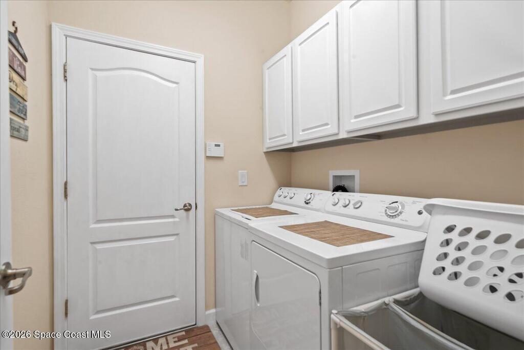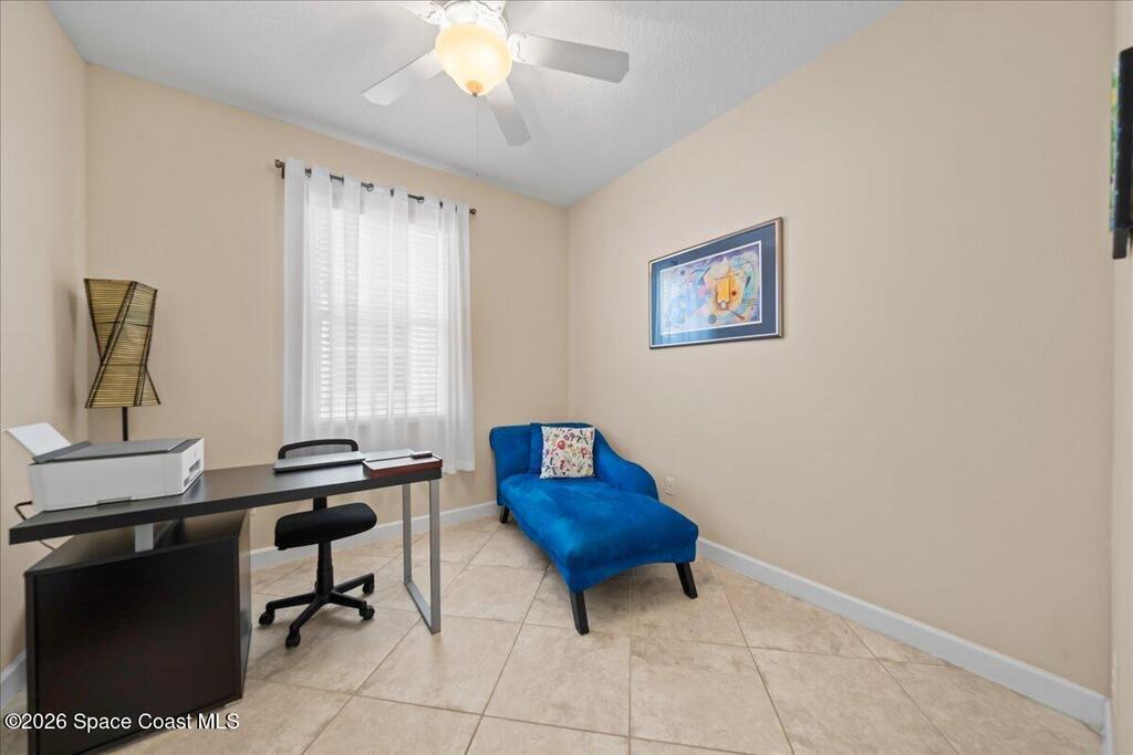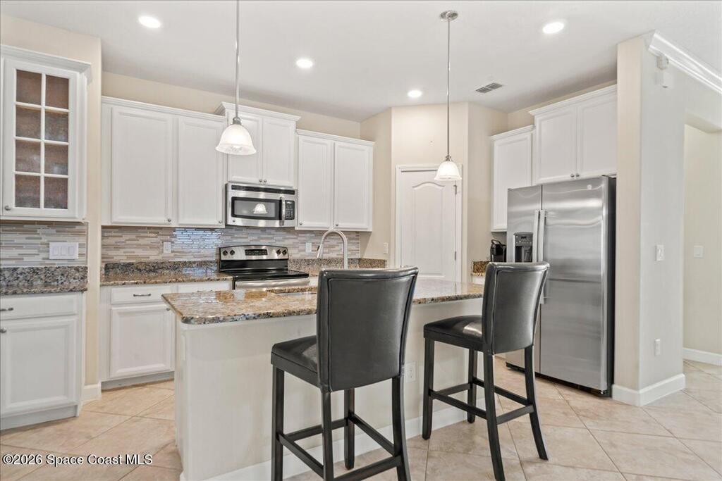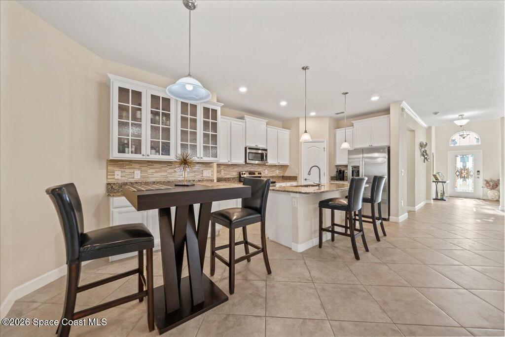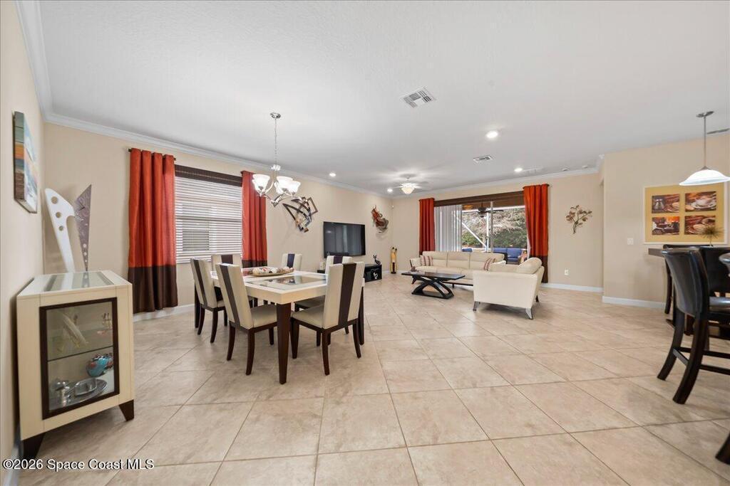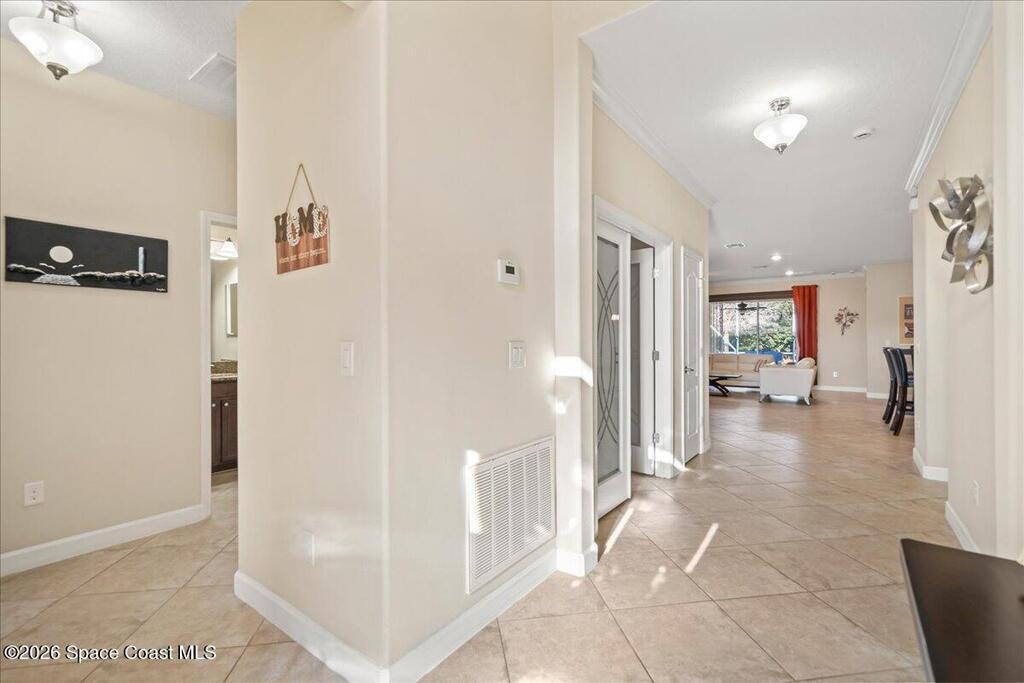 Welcome to one of Brevard County's premier active adult communities. This meticulously maintained Hamilton II model offers 3 bedrooms plus an office/den, 3 bathrooms, and a 2-car garage. Designed with comfort & elegance in mind, this home features 20'' tile flooring, crown molding, custom closet systems, & accordion hurricane shutters for added peace of mind. The kitchen features granite countertops, stainless steel appliances, tile backsplash, & expanded cabinetry for storage, perfect for everyday living & hosting. The primary suite is a true retreat with natural wood flooring, walk-in closets, and a spa-inspired bathroom with a frameless glass shower. Step outside to your paver lanai, fully enclosed for year-round enjoyment, an ideal setting for coffee or evening relaxation. Residents enjoy resort-style amenities in this guard-gated community, including a clubhouse, fitness center, sparkling pool, & various sports courts. Experience low-maintenance living, social activities, & more!