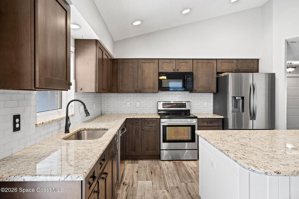Three bedrooms, two baths, and 1,560 square feet come together in Longwood in Melbourne with a layout defined by vaulted ceilings and tile flooring flowing throughout the entire interior. Volume and continuity create an open, airy feel while keeping maintenance simple and style cohesive. Major improvements have already been handled, including a 2019 roof, 2021 garage door, select windows replaced in 2013 and 2019, and a 2015 A/C system. Thoughtful updates combined with solid core systems offer peace of mind and long-term value. Clean architectural lines, elevated ceilings, and modern flooring give the living spaces a fresh, streamlined presence that feels both comfortable and current. An ideal balance of size, function, and smart upgrades within an established Melbourne community.