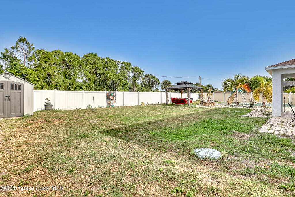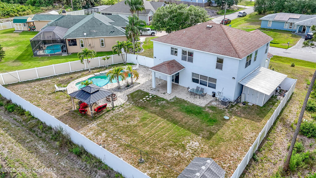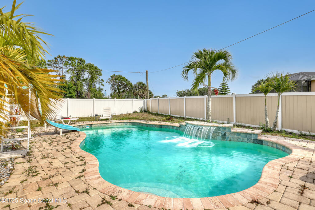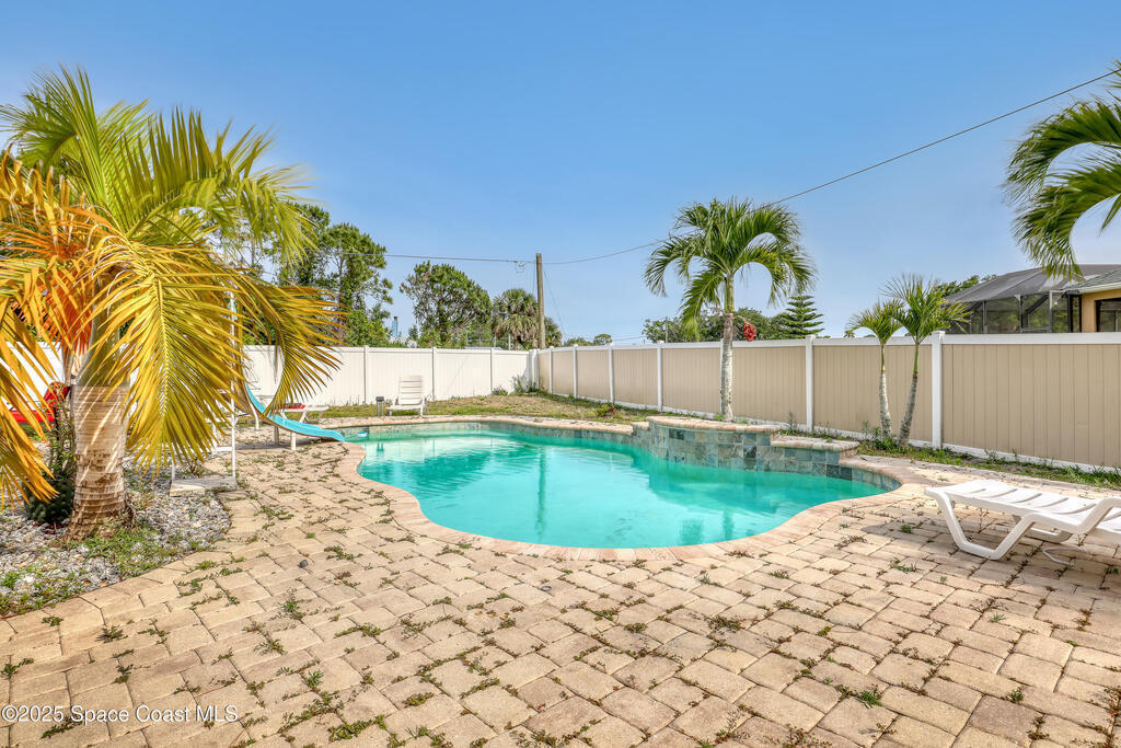 Discover your dream home in SE Palm Bay. This stunning 2006-built residence offers 2,704 sq ft of completely updated living space, featuring 4 spacious bedrooms including a private mother-in-law suite and 3 full baths. Entertain your family and friends in your resort-style backyard oasis. Beautiful swimming pool, cascading waterfalls, and a shaded picnic area perfect for al fresco gatherings. Inside, you have tile floors and modern finishes flow throughout an open concept layout, with a new kitchen that boasts stainless appliances and ample counter space. Just a few minutes from I-95 for easy commuting, and surrounded by the best restaurants, shops, and amenities. Don't miss the chance to make this property your own slice of Florida paradise!