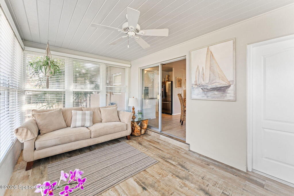 Located south of 5th Avenue in Indialantic, just moments from the beach, this timeless 1957 coastal 3 bed, 1.5 bath residence blends historic charm, thoughtful updates, and the relaxed lifestyle that defines beachside living. Positioned on a prime corner lot between 7th Avenue and historic Ramona Avenue, the home carries a unique sense of place rooted in the area's rich history. Designed for comfortable everyday living and effortless entertaining, the bright, open floor plan flows seamlessly into a sunlit enclosed Florida room, extending the living space year-round and creating a natural connection to the outdoors. Step outside to mature oak trees and lush podocarpus hedges that create a shaded backyard retreat, ideal for outdoor gatherings, al fresco dining, and relaxed coastal evenings.