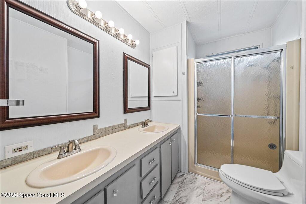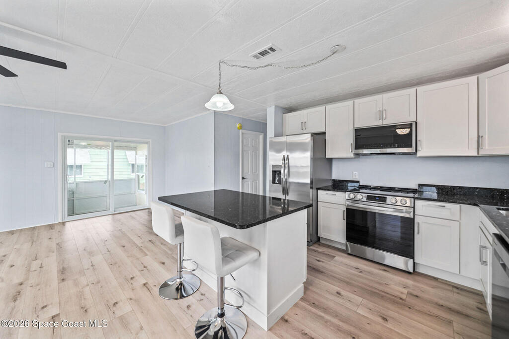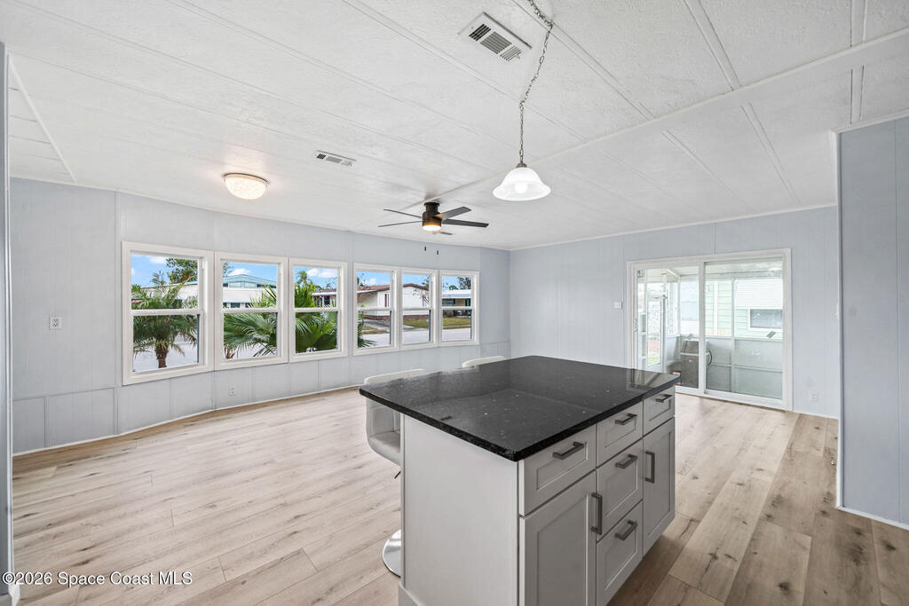 This move-in ready home is packed with major upgrades that can save you money and stress--featuring a 2022 HVAC, newer water heater, new vapor barrier underneath the home, and a solid 2-year-old metal roof. New double-pane windows add even more efficiency and comfort. Inside, you'll love the beautifully updated kitchen with new cabinets, granite countertops, and all-new stainless steel appliances. Fresh interior paint, gray vinyl flooring throughout, and abundant natural light give the home a clean, modern feel. Outside, enjoy a fenced-in yard plus a beautiful storage shed for tools, hobbies, or extra storage. Optional HOA membership offers access to a pool, clubhouse, tennis/pickleball courts, fitness center, and more. Conveniently located just minutes from Turkey Creek Sanctuary, the Indian River, and the beach.