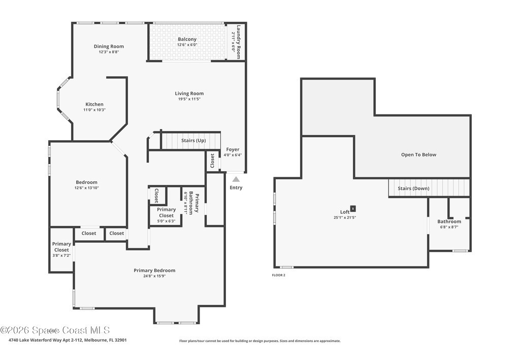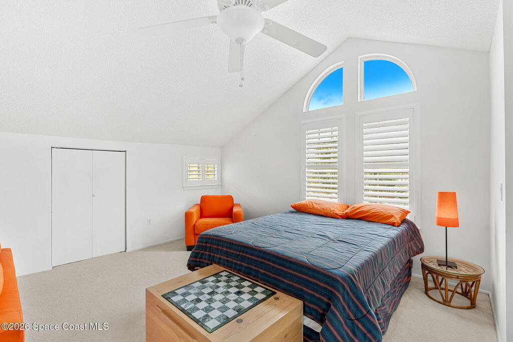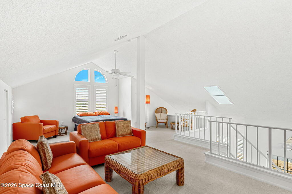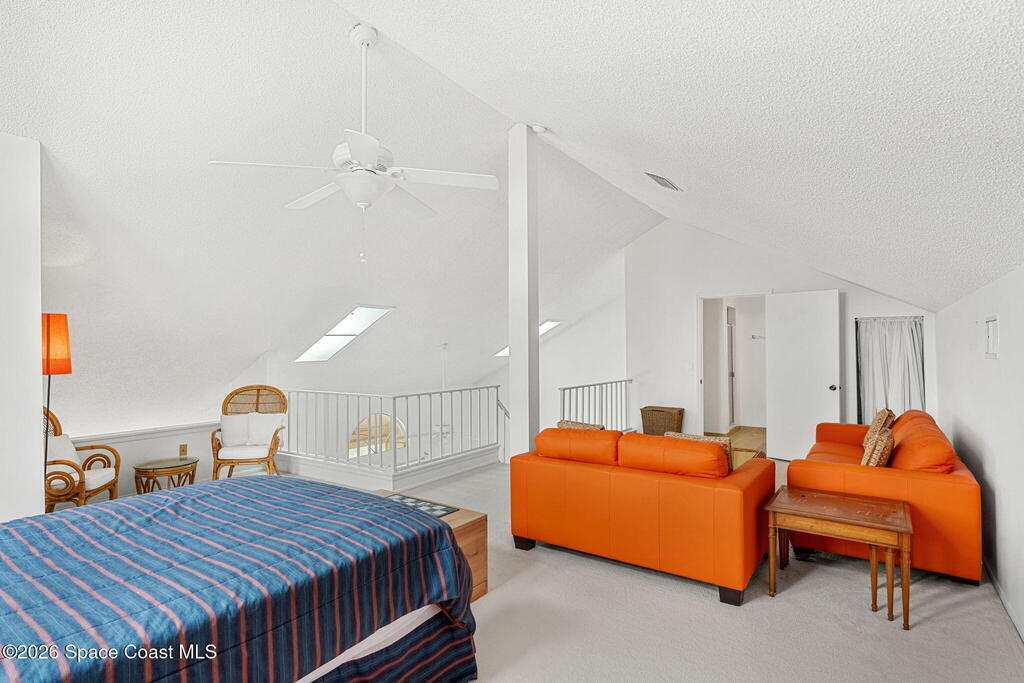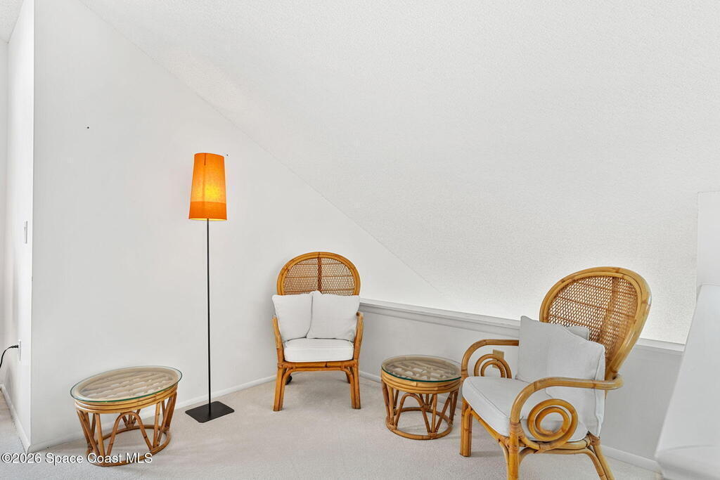 This second floor, two-story unit offers flexible living with main floor primary bedroom/bathroom and additional bedroom/bathroom, an upstairs loft and another full bath -- ideal for additional bedroom, a home office, or secondary living space. Enjoy peaceful pond views from your private balcony and the comfort of newer carpet throughout. The kitchen opens to the main living area for easy everyday living or entertaining. A 1-car garage adds convenience, and the washer and dryer convey (located in the porch storage room). HOA includes basic cable and internet as well as exterior maintenance with optional access to the community pool for an additional fee. A stair lift is already installed for added accessibility. Perfect for downsizers or investors seeking low-maintenance living in a centrally located Melbourne community near shopping, dining, and major roadways.