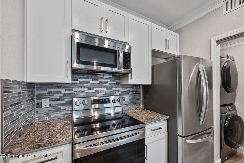 Completely updated 1 bedroom 1 bath condo facing the fountain at the Lakes at Viera East! It also comes with a 1 car garage and a storage unit. The kitchen was remodeled with new granite countertops and new cabinets. New stainless steel appliances including a Samsung washer and dryer. Luxury vinyl plank flooring throughout. The bathtub was removed and converted to a walk in shower. Impact windows! 5 and 1/2 inch crown molding and plantation shutters throughout. Heated community pool, fitness center and putting green! Conveniently located to 95, the new Whole Foods, Miller's Ale House and Ford's Garage! Viera Hospital is less than 10 minutes away. Cable and internet included in the rent. Available starting March 1st!