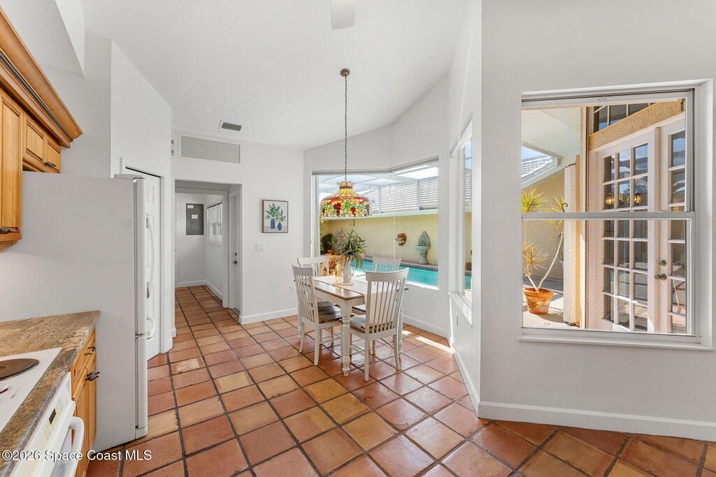 Courtyard living, but make it resort-level. A full-size private screened pool anchors this gorgeous townhome, framed by generous covered and open-air lanai spaces made for morning coffee, weekend lounging, and effortless entertaining. Inside, a renovated kitchen brings the wow factor with rich wood cabinetry (dovetail drawers) and granite countertops, while an interior laundry room and a true 2-car garage keep daily life easy and streamlined. Upstairs, the primary suite feels like a retreat of its own, complete with a balcony and river view, a spacious walk-in closet, and a beautifully renovated bath that delivers the polished finish you want at the end of the day. Great layout with flexibility for family or guests, work-from-home, or a dedicated hobby space. Big-ticket updates are already handled, too: tile roof (2024) and two A/C systems (2019 & 2021). Gated Wexford community amenities include beach access, river pier, community pool, clubhouse and tennis.