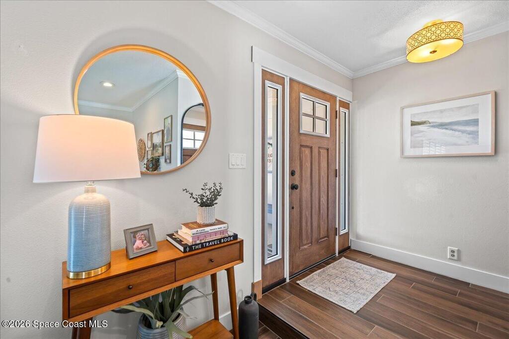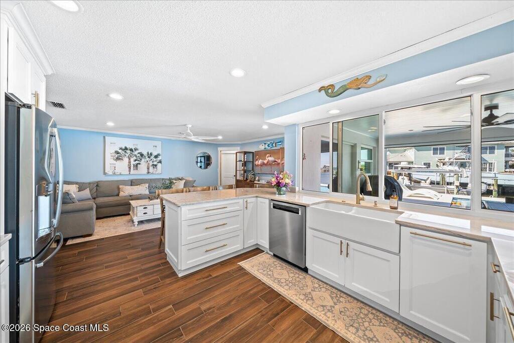 Perfectly positioned on a wide canal with direct access to the Indian River, this fully renovated Harbor East residence delivers effortless coastal living in one of Melbourne Beach's most desirable waterfront communities. Thoughtfully redesigned with a functional split floorplan, the home showcases timeless finishes, sunlit interiors, and seamless indoor-outdoor flow. The beautifully updated kitchen opens to spacious living areas, all oriented to capture tranquil water views. Step outside to a covered lanai with hurricane-rated roll-down shades, a newly built heated pool and spa, and a private dock ideal for boating enthusiasts. Major upgrades include impact windows and a new metal roof, offering both style and peace of mind. Zoned for highly regarded Gemini Elementary and just a short bike ride to the beach, Ocean Avenue's restaurants, and local shops, this move-in ready home embodies the very best of the Melbourne Beach lifestyle.