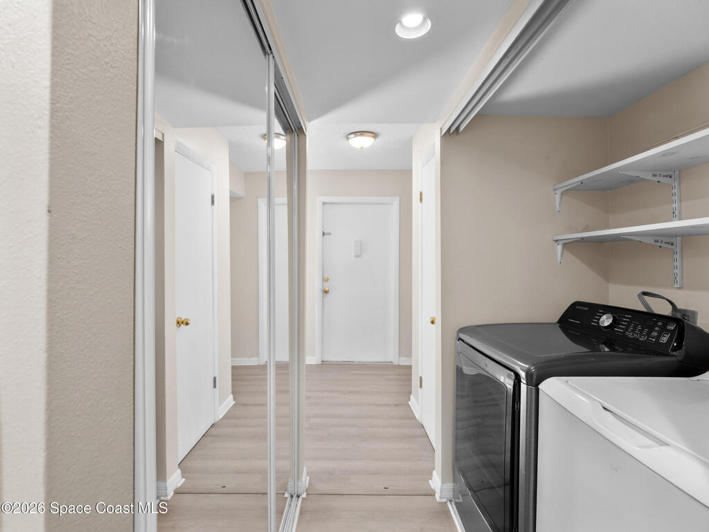 Welcome to Shady Dell. Come & See This 2 Bedroom 2 Bath First Floor Corner Unit Condo. New Flooring, New Kitchen, New AC & Water Heater, and New Interior Paint ALL IN 2025!! The Association Includes The Following: Cable TV, Water/Sewer, Roof & Exterior Maintenance, Insurance, Lawn Care, Pest Control, Clubhouse w/ Exercise Room, Racquetball, Shuffleboard, and Community Pool. The Washer and Dryer are in the Unit Plus a Storage Closet on the Screened Porch. Excellent Central Melbourne Location Close to Shopping, Dining, Eastern Florida College, Downtown Eau Gallie, Wickham Park and About 10-15 Minutes to the Beaches