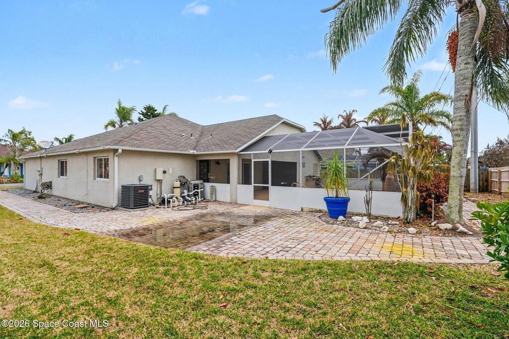 Welcome to the beautiful and highly desirable Westbrooke community in West Melbourne. This spacious 4-bedroom, 2-bath, 2-car garage home offers a versatile and functional layout designed for comfortable Florida living. Inside, you'll find both a formal living room and formal dining room, plus a generous family room that opens to the kitchen -- perfect for entertaining or everyday living. The eat-in kitchen features a breakfast bar and ample space for casual dining. The popular split floor plan provides privacy for the primary suite, which includes a walk-in tub, separate shower, and plenty of space to unwind. The home features tile flooring throughout, soaring 10-foot ceilings, and elegant rounded corners that enhance the open, airy feel. Step outside to enjoy your screened-in pool enclosure, ideal for relaxing or hosting gatherings year-round. The exterior is equally inviting with a pavered driveway, walkways, and welcoming front porch that add both charm and curb appeal. HVAC 2025.