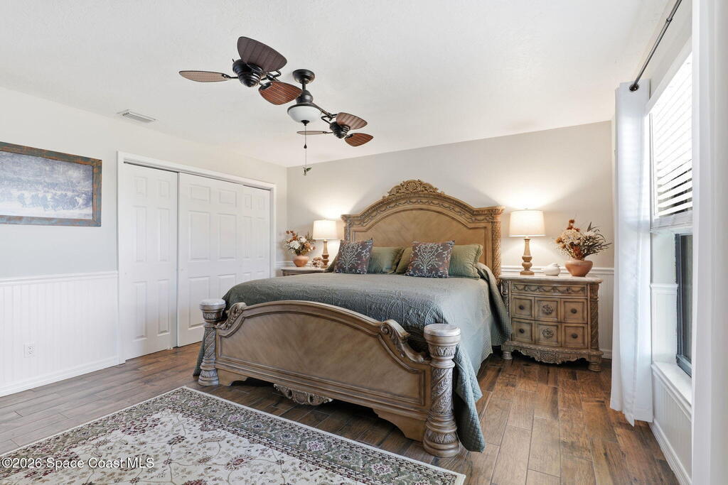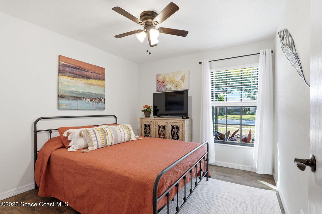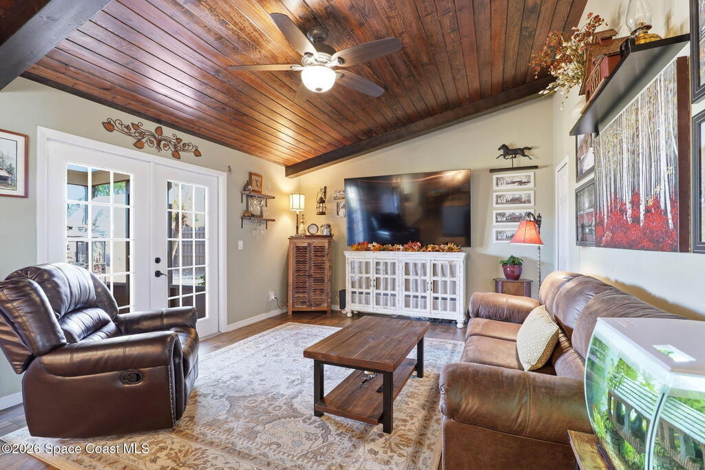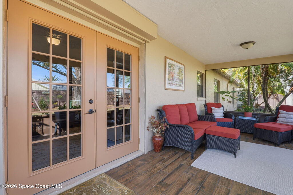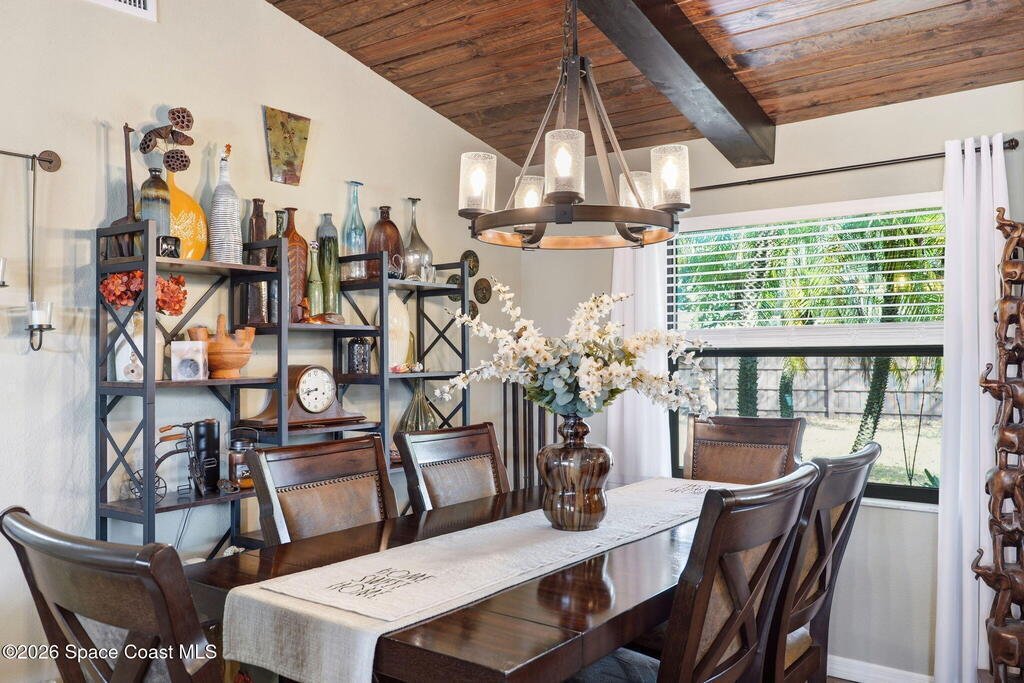This home exudes thoughtful style and design from the very moment you arrive. Vaulted tongue-and-groove ceilings with exposed beams create warmth, complemented by wood-look tile flowing seamlessly throughout the entire home. The impressive kitchen features 15-inch deep soft-close cabinetry, sleek induction cooktop, GE Profile appliances, and Waterdrop reverse osmosis filtration system that even filters water for ice cubes. Impact windows provide peace of mind, along with a 2024 roof, 2018 gas water heater, and a variable-speed AC system (2014) which is known for its longer-than-average lifespan. Screened porch and private fully fenced backyard offers premium cedar fencing (resistant to rot and insects), storage sheds, and double-gate yard access with potential to store a small trailer or boat. Ideally located near Publix, the Eau Gallie Arts District, and I-95. Schedule a showing today!