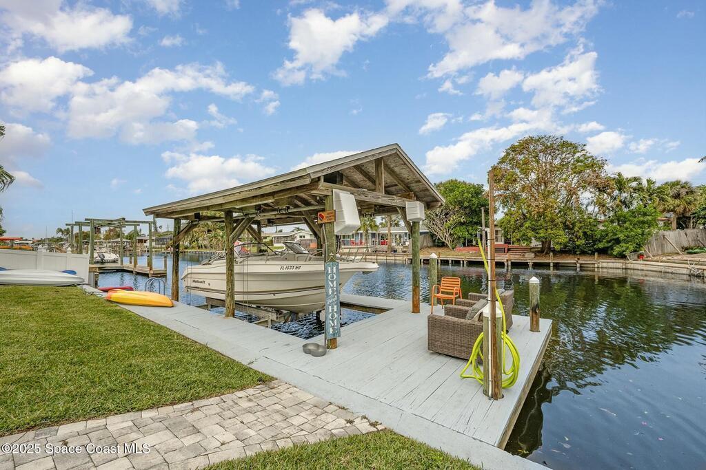 NEW in Satellite Beach, FL! Experience coastal luxury at its finest in this beautifully updated 2 BED+ | 2 BTH WATERFRONT retreat offering a versatile layout.... perfect for modern living! Featuring a stunning quartz kitchen, spacious living area and a custom primary suite, this home blends comfort and style with abundant natural light flowing through the open floor plan to a screened patio overlooking serene water views. Step outside to a tropical, fenced backyard oasis complete with a private dock where dolphins and manatees are frequent visitors, plus a newer boat lift (2024) for effortless waterfront adventures! Recent upgrades include a new EV Charging Station, Roof (2023), Lennox HVAC Furnace (2025), Water Heater (2024) and a spacious LANAI added in 2025. Fantastic BEACHSIDE proximity, with NO HOA and just minutes from shopping, dining and A-Rated schools... this exceptional property delivers the ultimate SPACE COAST lifestyle!