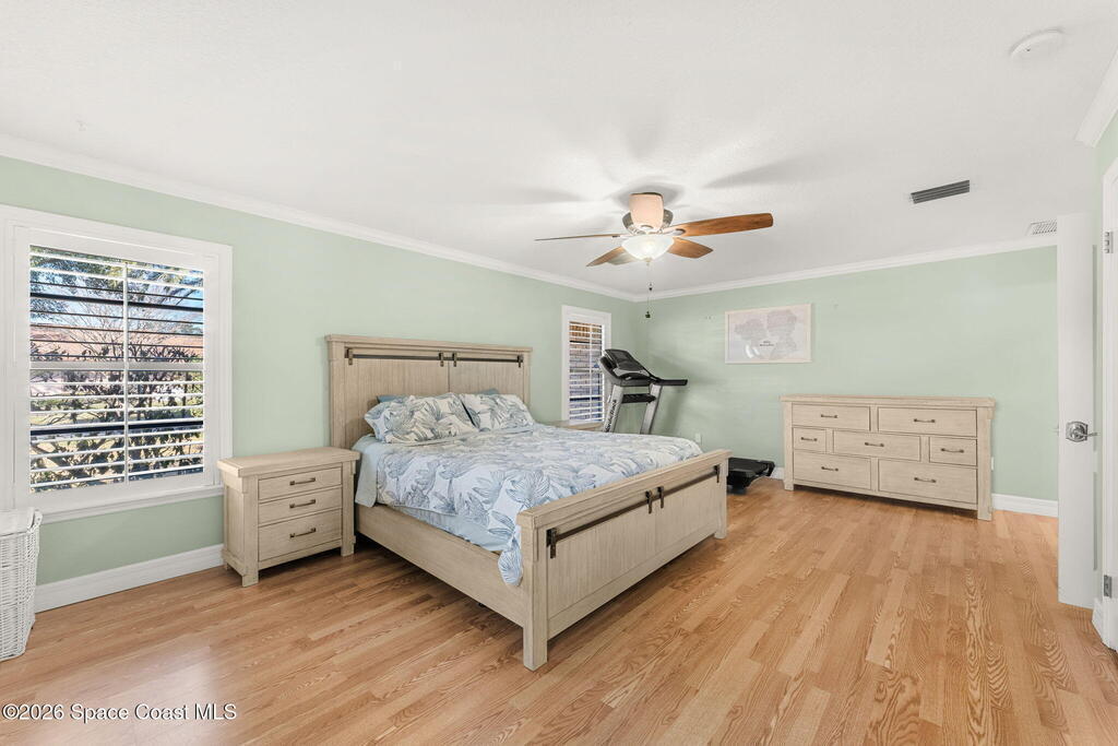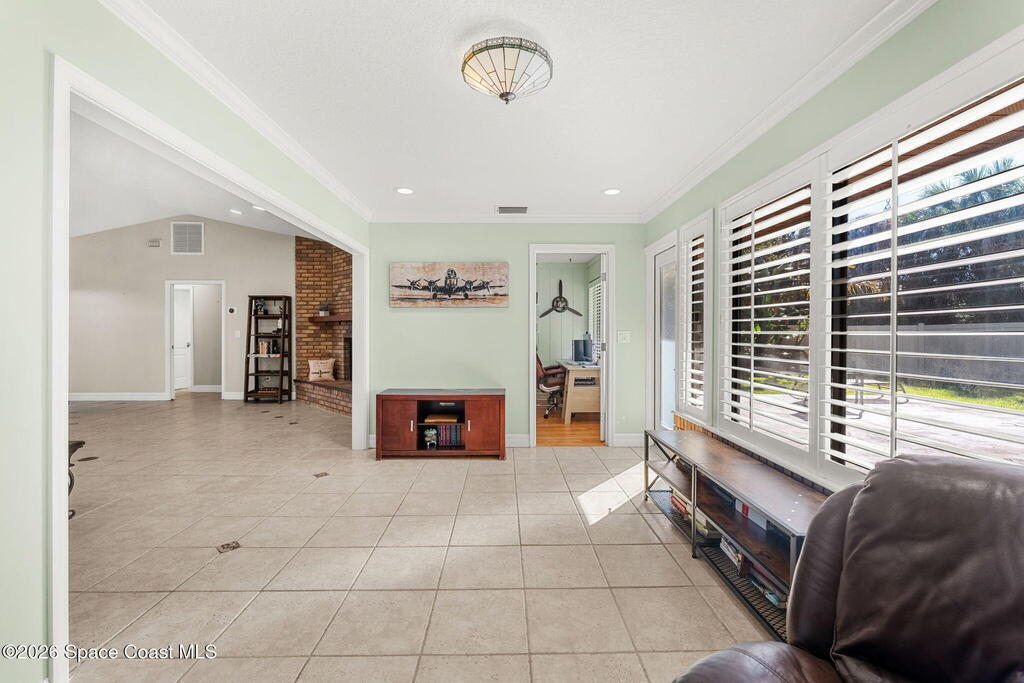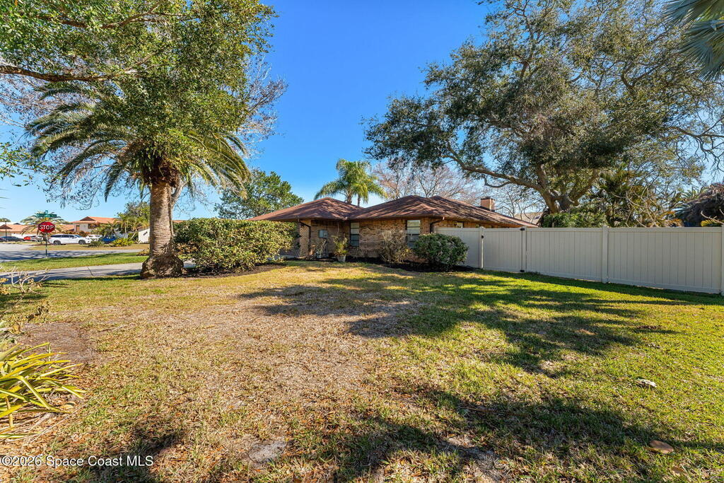 Extremely well maintained Suntree home with the perfect blend of timeless character and modern updates! Vaulted ceilings and plenty of windows make this home feel bright, airy and inviting the moment you step inside. 4th bedroom/office has a wall of windows that overlook fully fenced backyard. Split floorplan. AC 2024. Oversized 2 car garage. Additional storage room in rear of home, perfect for your holiday decor or garage storage overflow. Walkable to Interlachen Park with shaded playground, basketball hoops, covered pavilion. As part of the Suntree Master Association, residents can enjoy jogging trails, pickleball, parks, playgrounds, etc.