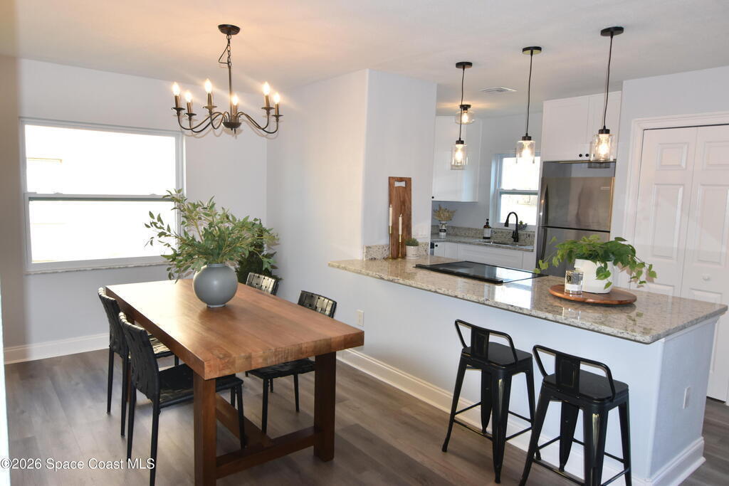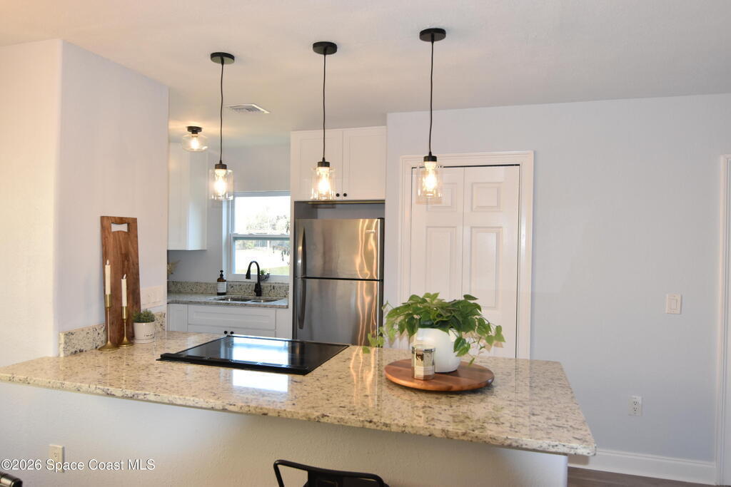 Beautifully updated with effortless coastal charm, this light-filled end unit offers style, and serene lake views. Thoughtfully upgraded and tastefully finished, the open-concept kitchen and great room create an inviting space perfect for relaxing or entertaining. Brand new windows, flooring, bathrooms, kitchen, doors and more!!The spacious primary suite features a walk-in closet and a private en-suite bath, while a second bedroom and full bath provide flexibility for guests, a home office, or both.Step outside to your private screened patio and unwind with peaceful water views -- the perfect spot for morning coffee or evening sunsets.Enjoy resort-style community amenities including a pool and playground, all ideally located just 10 minutes to the beach, 15 minutes to Kennedy Space Center, and 35 minutes to Orlando International Airport. And yes -- you'll have front-row seats to unforgettable rocket launches right from home.This is Florida living done right.