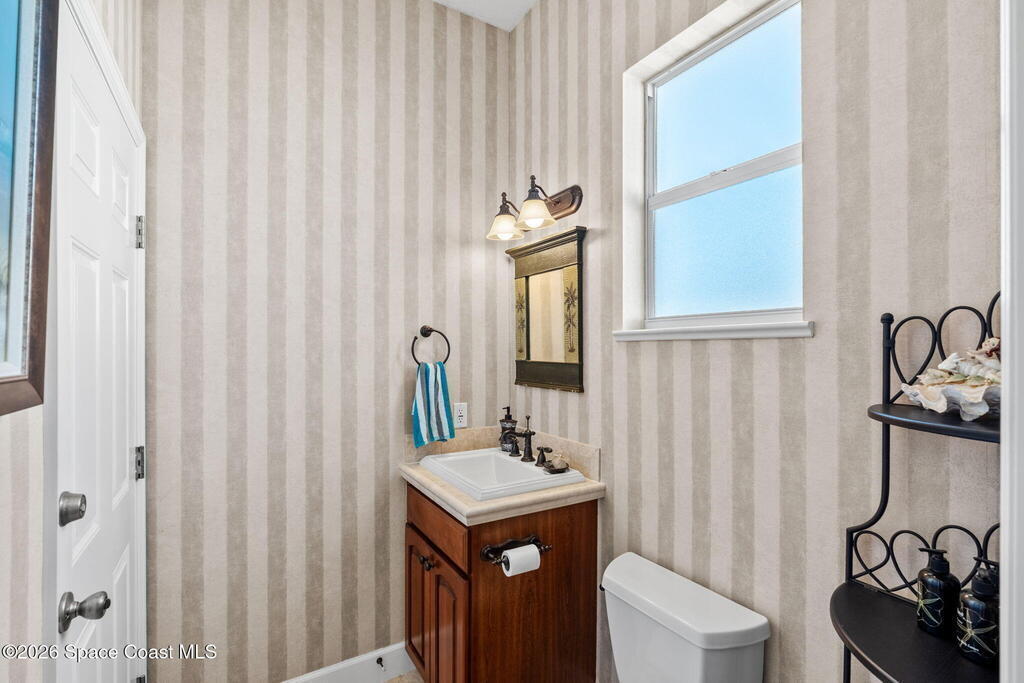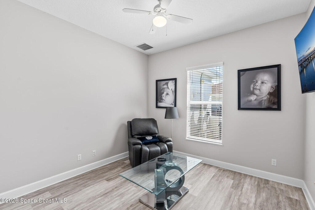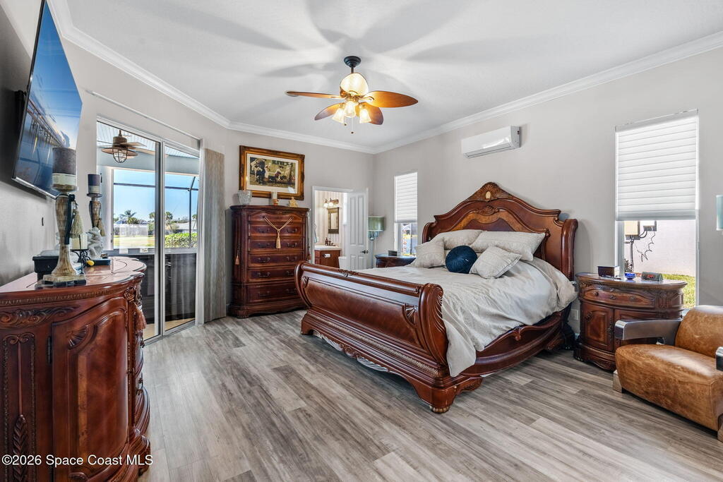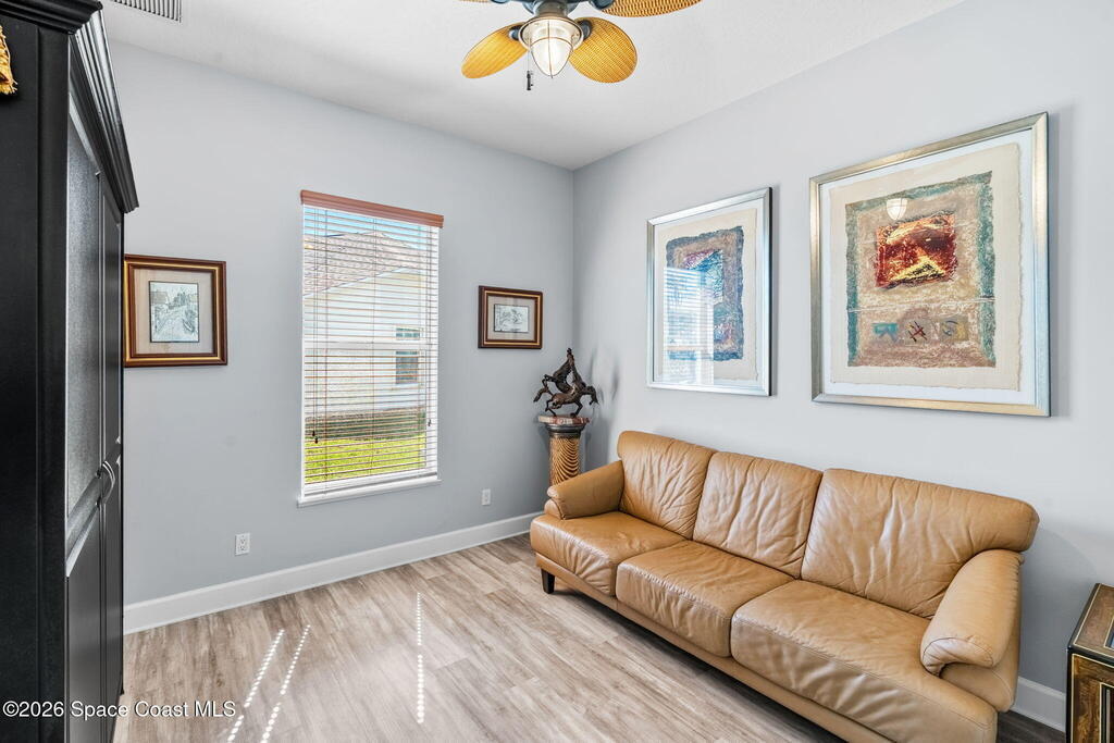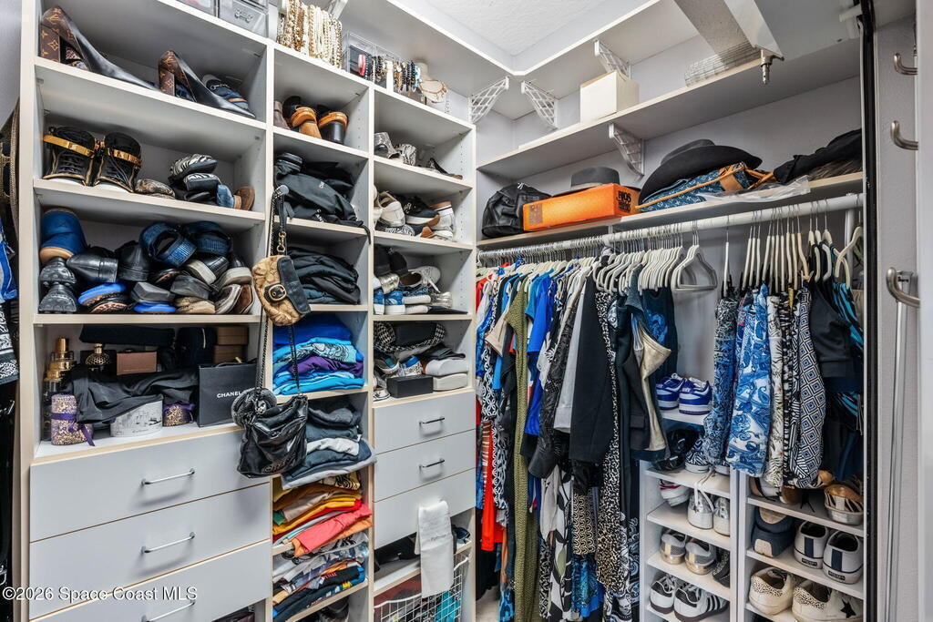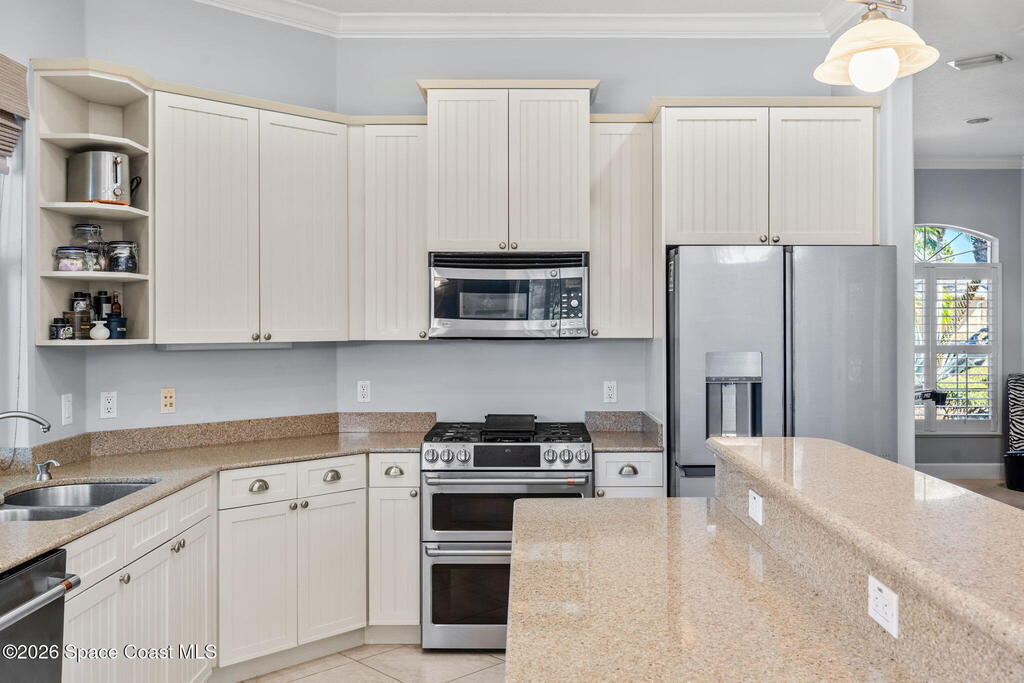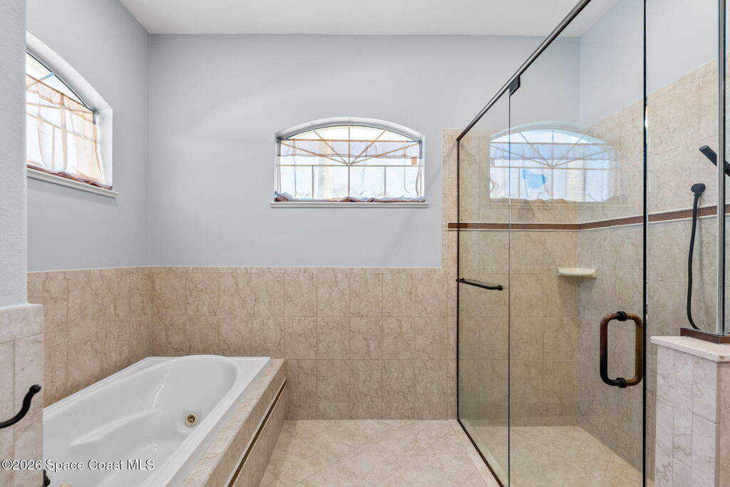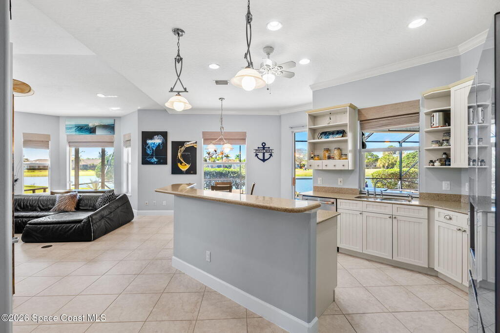 WELCOME to this STUNNING Merritt Island Golf Course Residence! A custom-built home that encompasses the best of impressive upgrades & builder touches. Tour this elegant 3 BED 2.5 BATH PLUS a private Office home that is beautifully appointed with soaring ceilings, a Chef's Kitchen, grand primary bedroom with 2 walk in closets with one transformed to a safe room. The spacious floor-plan also allows a separate upstairs OFFICE LOFT, complete with MILLION DOLLAR VIEWS from the covered balcony, perfect for the family that may be working remotely from home! The three car garage boosts oversized garage doors and a split entrance. Bask in the Florida sunshine as you swim laps in the INFINITY POOL, complete with fountains & a stone waterfall. After enjoying dinner at the summer kitchen, end the evening by relaxing by the cozy fire. Perfect proximity to NASA, the Space Coast Beaches & Orlando. This gorgeous home is not to be missed!