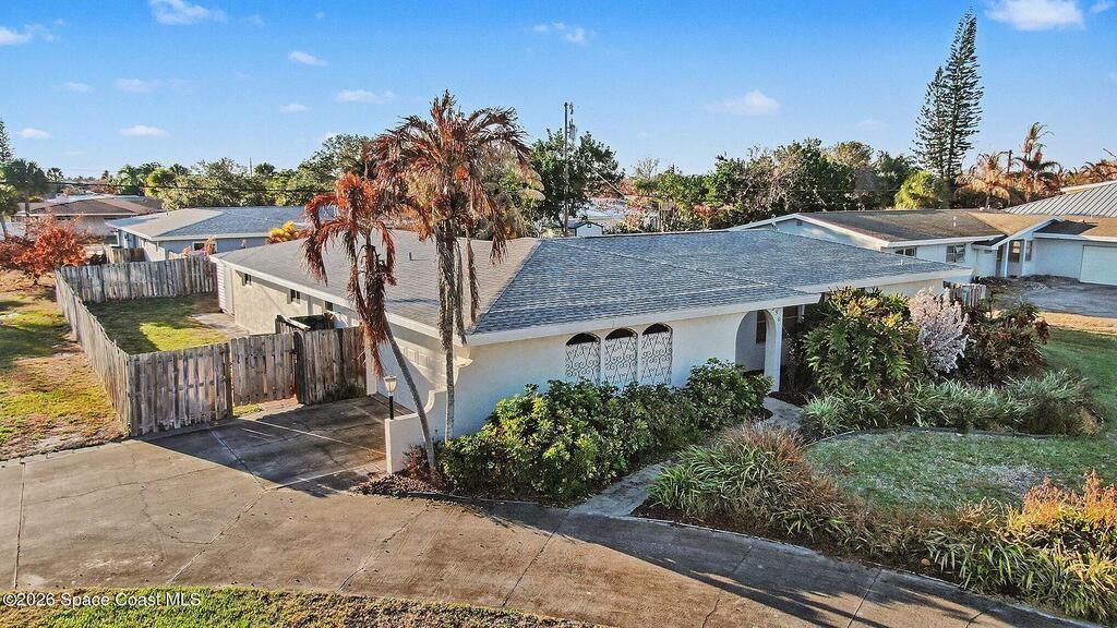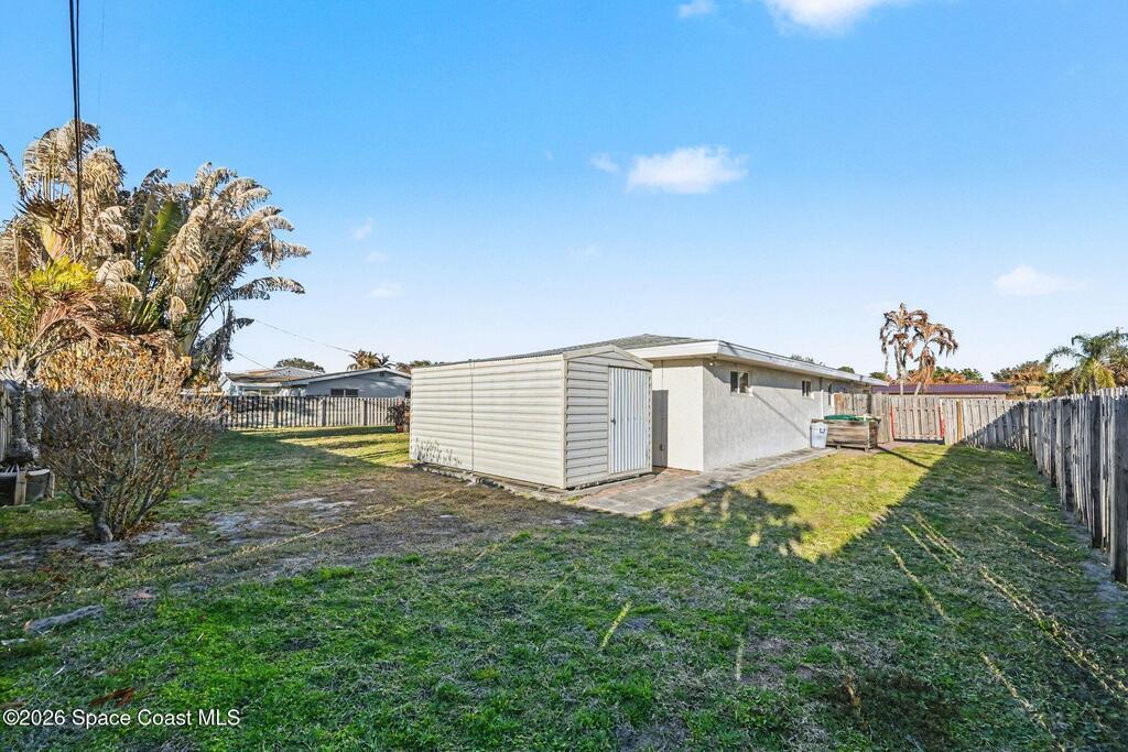 MOVE-IN READY home located in one of the most excellent Satellite Beach subdivisions. This TRUE four bedroom home has one of the most preferred layouts of all the original area homes with a split bedroom floor plan, two-car garage, inside laundry, eat-in fully outfitted kitchen, large covered patio, & two large living areas all on a .29 acre corner lot with a LARGE BACKYARD unlike most corner lots. Upgrades include roof 2022, AC 2021, and hurricane windows 2024. This home was never rented and was meticulously maintained by a highly respected local electrician, so all electric is up to code!!! A large back porch overlooks a beautiful back yard with an outdoor shower and large solid shed with electric on a concrete pad. This home is walking distance to the beach, parks, schools, playgrounds, sports fields, restaurants, and the Satellite Beach Police Department. This is an excellent property if you are looking for the best of beachside!!! Someone is going to SCORE with this one...