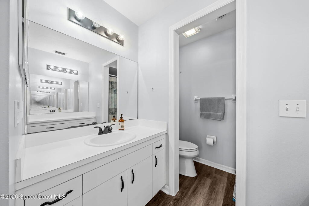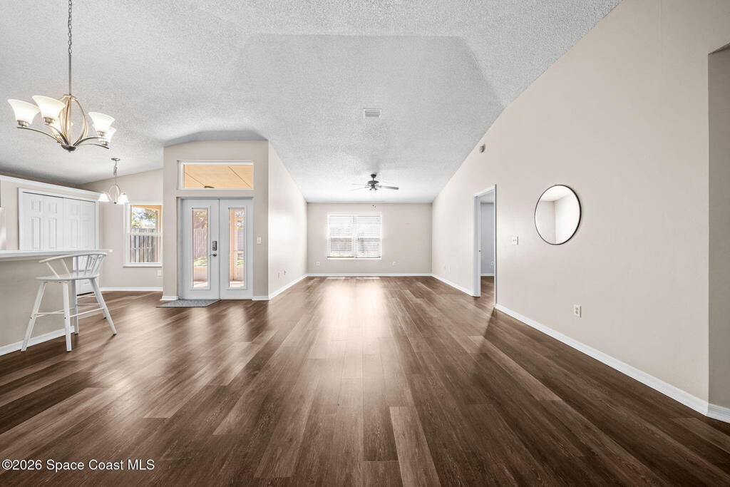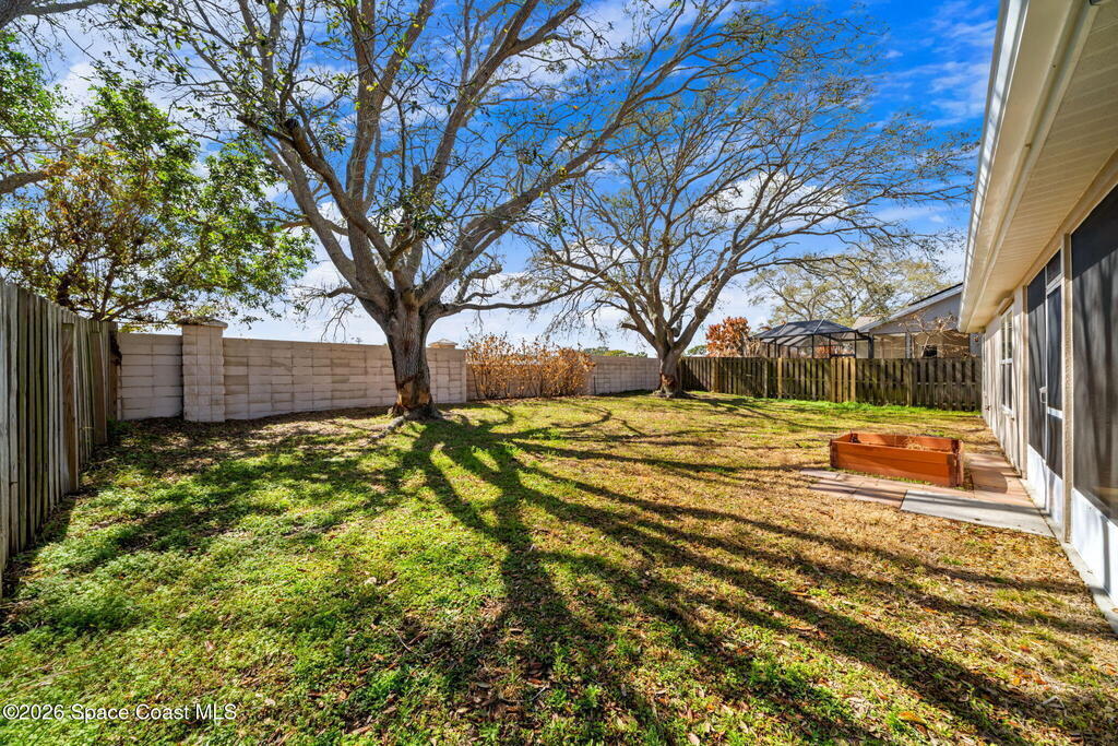Located in a quiet Viera neighborhood, this home offers comfortable, convenient Florida living. The open living area features an eat-in kitchen and durable luxury vinyl plank flooring throughout. The spacious primary suite includes a walk-in closet and walk-in shower, and the fully updated guest bathroom adds modern appeal.Impact windows were installed in 2020 for added protection and efficiency. Enjoy the screened-in porch and private backyard for outdoor relaxation. The refrigerator, washer, and dryer all convey with the home.The community includes walking trails, lakes, and a playground. Just minutes from shopping, dining, A-rated schools, and only three minutes to I-95, this location makes commuting to Orlando and around Brevard County easy.Tour this one and make it yours!