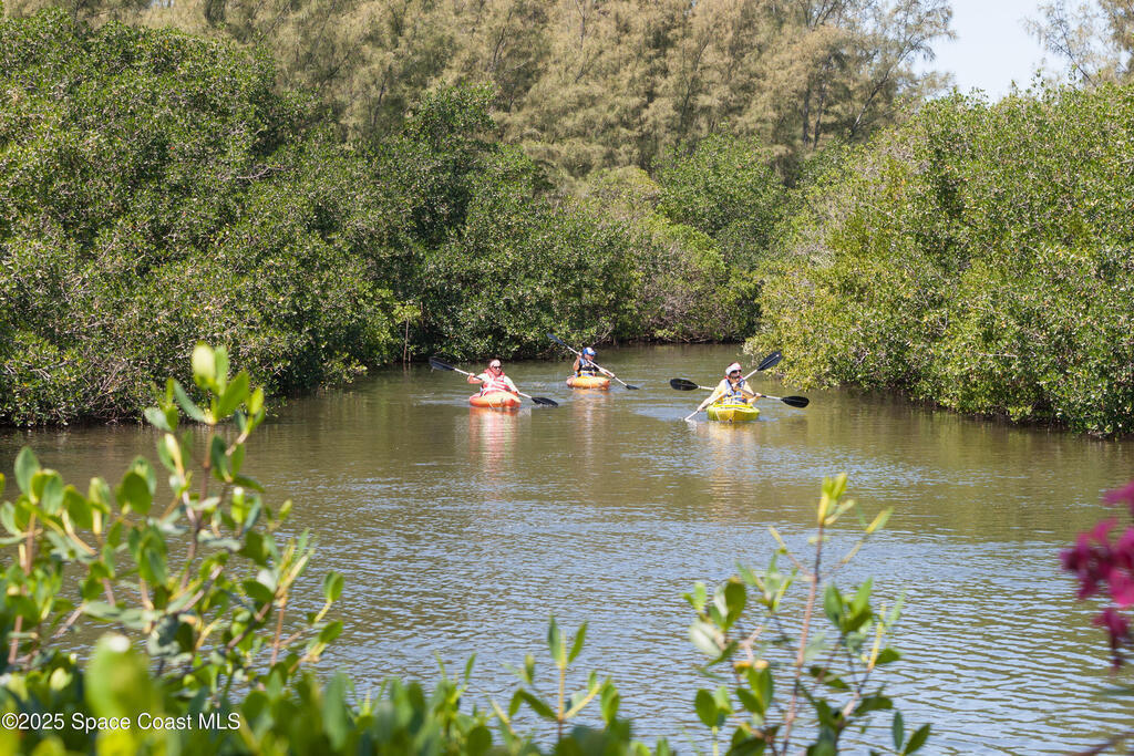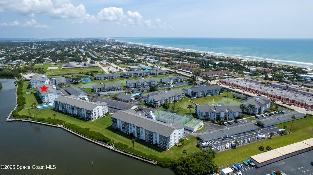 VERY RARE 2 PRIVATE-1 CAR GARAGES CONVEY!! Direct Riverfront with views of the Banana River and the Thousand Islands Preserve! You will enjoy watching marine wildlife from your condo all day, heron, dolphin, manatee, osprey and more! West facing unit with amazing sunsets. This well-maintained unit is ready for you. Primary bathroom has been beautifully updated with large walk-in shower and closet. Decorated in pleasing neutral tones to help you relax and enjoy the view. Plantation shutters throughout. Windows are high impact and storm shutters on the lanai. For the active lifestyle Harbor Isles Community offers 2 heated pools plus 1 heated lap pool, 2 tennis and pickleball courts w/ lights, sauna, exercise room, clubhouse, riverfront dock and free RV & boat storage. Ramp Road Park next door to launch your watercraft. The Atlantic Ocean is just 2 blocks away. Community conveniently located near Cocoa Beach Playhouse and Downtown Cocoa Beach for all your entertainment enjoyment!