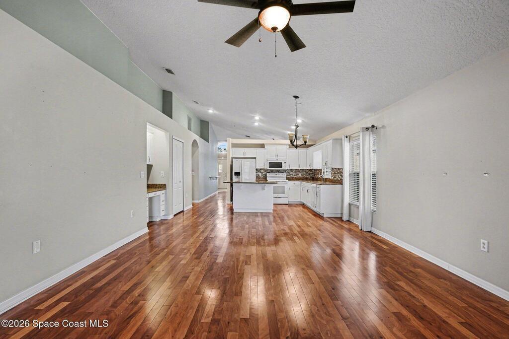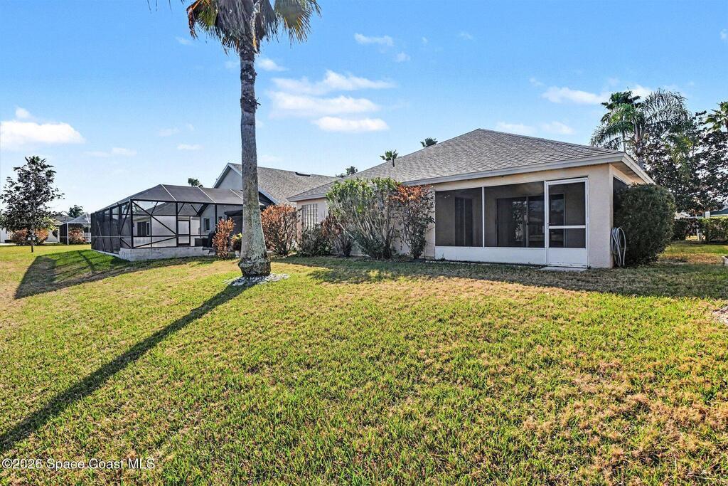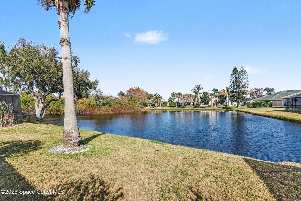 Located in the highly sought-after Misty Creek community of Suntree, this well-maintained 3BR/2BA waterfront home offers a desirable floor plan with two separate living areas, providing flexible space for everyday living and entertaining. The open kitchen features granite countertops, an island with seating, and ample cabinetry, flowing seamlessly into the main living space.Sliding glass doors lead to a screened back porch overlooking the tranquil lake--perfect for relaxing and enjoying the water views. The private primary suite includes a versatile bonus flex space ideal for a home office, sitting area, nursery, or workout room, with direct access to the porch. Spacious en-suite bath and generous closet space complete the retreat. Two additional bedrooms and full guest bath are located on the opposite side for added privacy. Interior laundry includes a gas dryer. Roof 2016, A/C 2023. Community pool. Enjoy waterfront living!