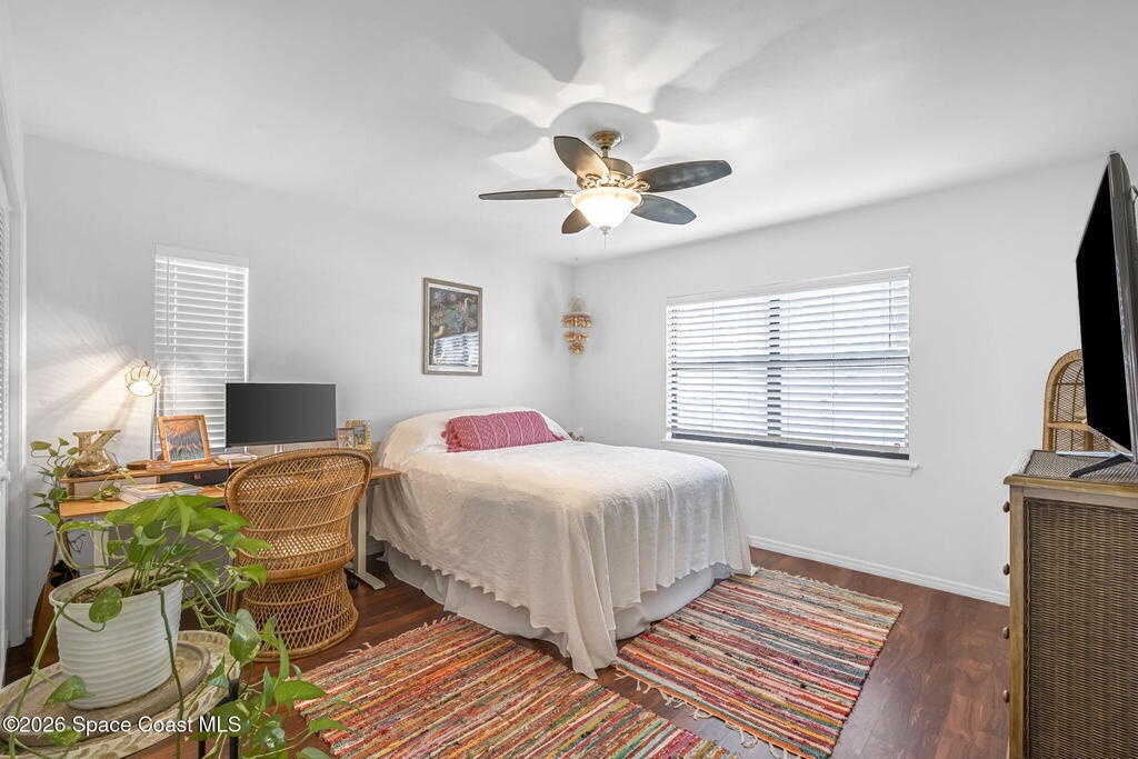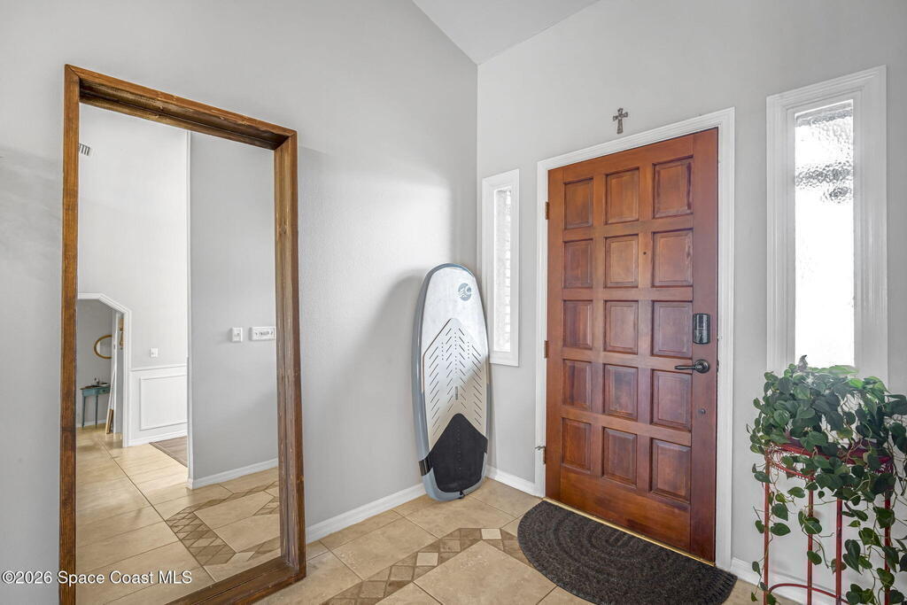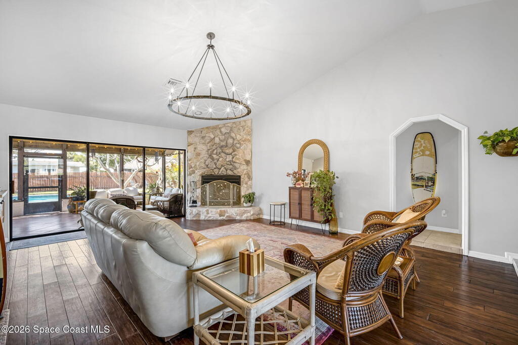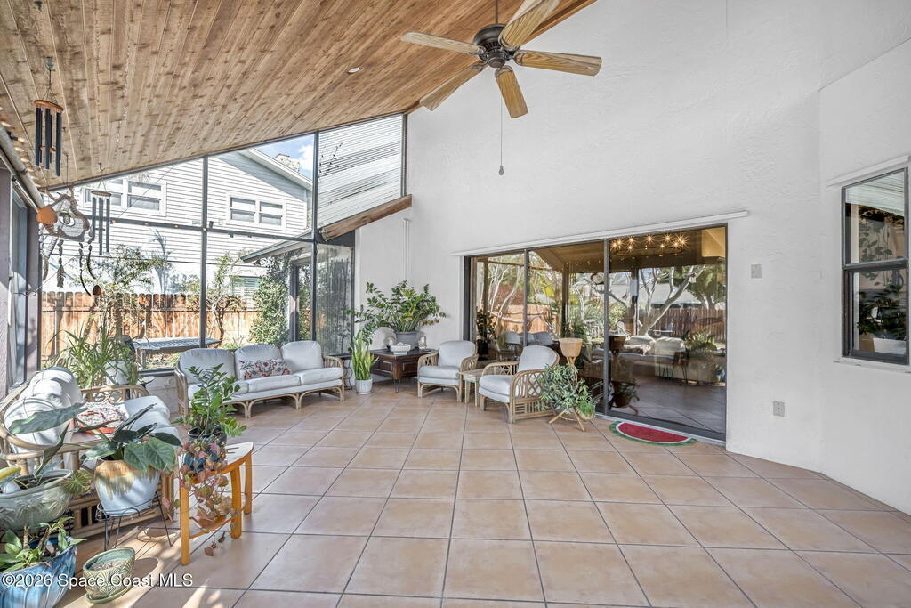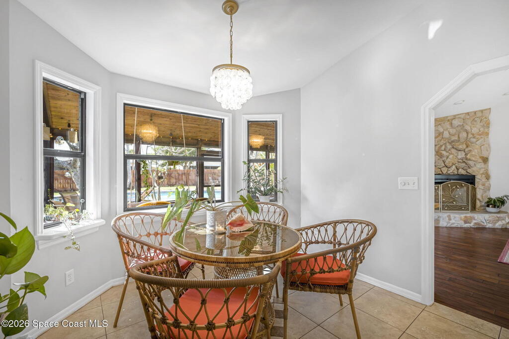 Still showing for backup offers . . .Beautifully built 3-bedroom, 2-bath pool home located on a quiet cul-de-sac, just four blocks from the beach and minutes from downtown Cocoa Beach. Zoned for top-rated schools, this home offers an ideal combination of comfort, location, and long-term value. A brand-new roof and fresh exterior paint provide peace of mind and a move-in-ready feel, while vaulted ceilings and a light-filled split floor plan create an open, functional layout designed for privacy and everyday living. Inside, the home features a stone fireplace, quality wood flooring, and tile throughout. The kitchen offers ample cabinet and counter space and opens to a breakfast nook with views of the pool and newly landscaped backyard. The primary suite includes a jetted tub, walk-in shower, and walk-in closet. With no HOA restrictions and included plans for an attached ADU, this property offers excellent flexibility for income.