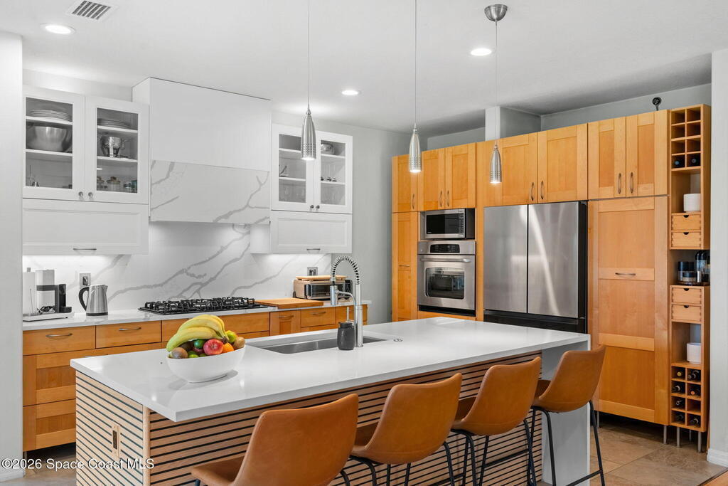 Exceptional updated 4 bedroom 3.5 bath home in the highly desirable and gated Pineda Ridge neighborhood, where style, comfort and location work together beautifully. From the moment you enter, you'll appreciate the thoughtful design and layout with flexible living spaces. At the heart of the home is a true chef's kitchen - a dream space for cooking,entertaining, and gathering. With abundant workspace, high end finishes and flow into the living and outdoor areas, it's perfectly designed for everyday living and special occasions. The primary suite with it's beautifully appointed bathroom, plus an additional bedroom and full bath, along with a convenient half bath, are located on the main level. Upstairs features 2 additional bedrooms and a full bathroom. New metal roof and A/C in 2023. Centrally located in Melbourne with easy access to the beaches, I-95, shopping, dining, and top employers.