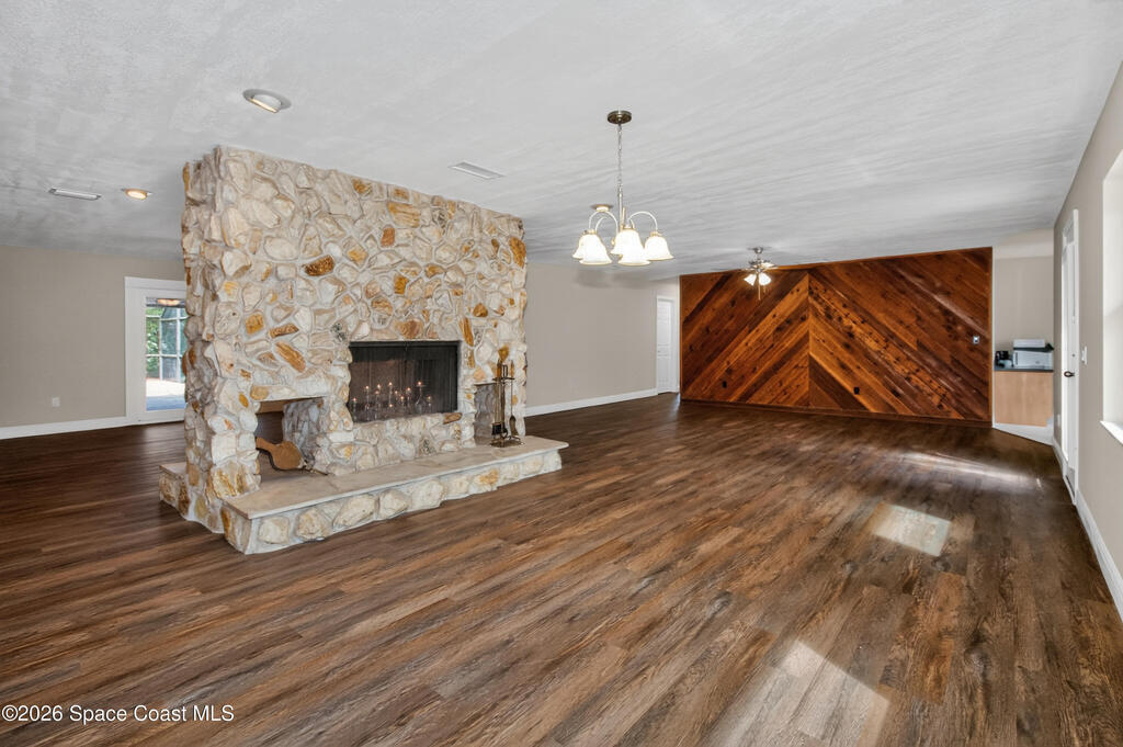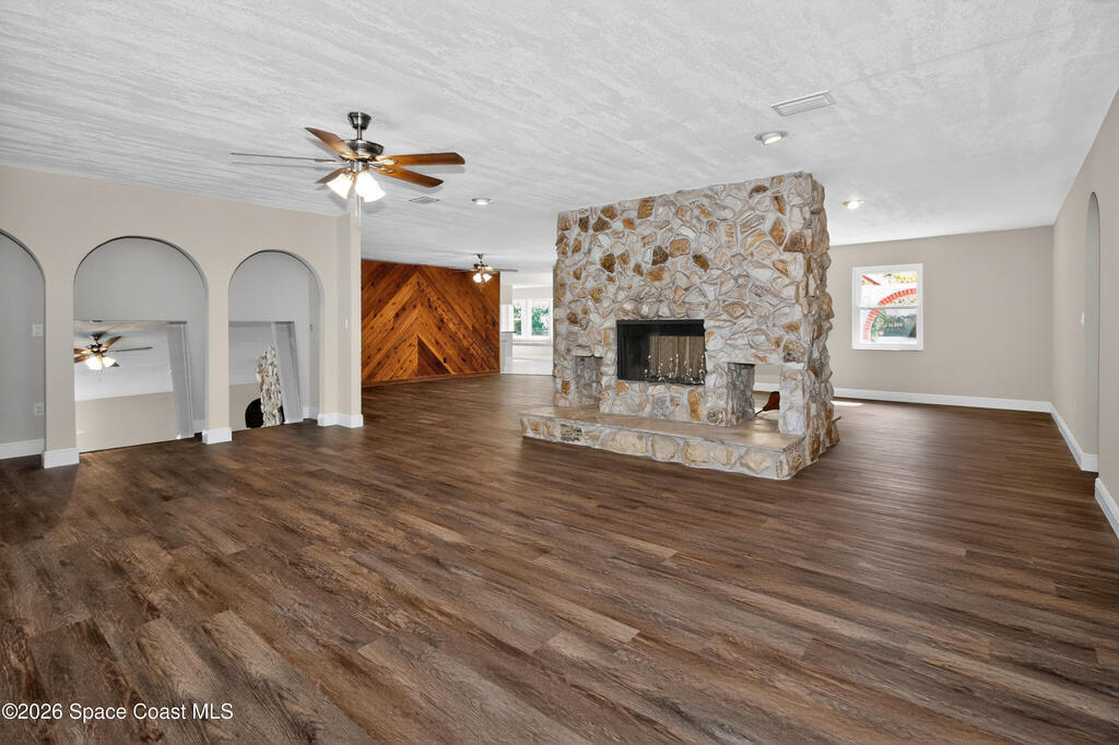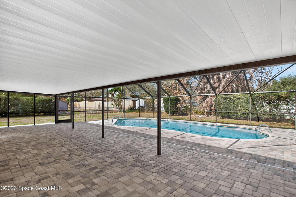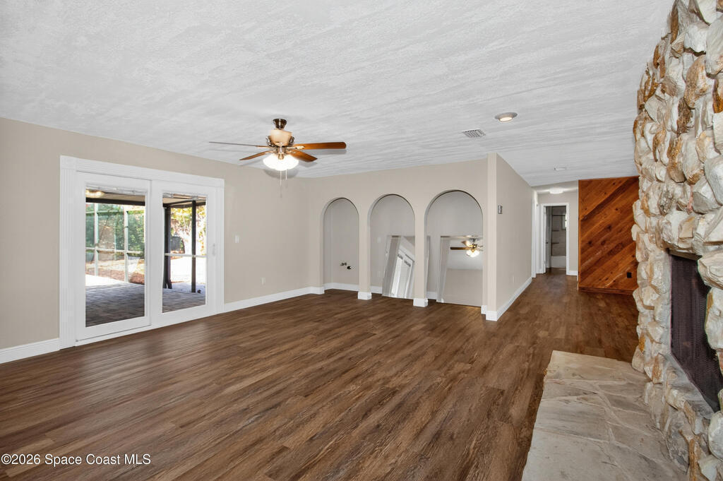 Fully renovated and truly move-in ready! A stunning double-sided stone fireplace is the centerpiece of the bright, open living and gathering areas, creating a warm and welcoming feel. The spacious layout and large rooms in this 4-bedroom home add comfort and a touch of everyday luxury. New vinyl plank flooring runs throughout, along with new ceiling fans, modern light fixtures, fresh paint, and updated baseboards. Step outside to enjoy the Florida lifestyle in your newly resurfaced, screened-in pool, surrounded by a brand-new paver deck--perfect for relaxing or entertaining. A new paver driveway adds great curb appeal to this solid concrete block home with Mediterranean style. Impact windows and freshly cleaned and sanitized air ducts provide added comfort. Conveniently located near shopping, dining, entertainment, and highly rated schools. Come, see it today, and make it yours.