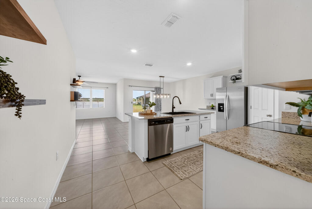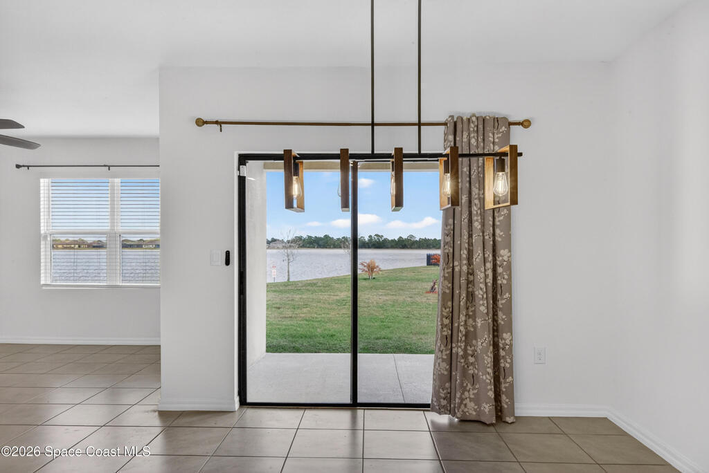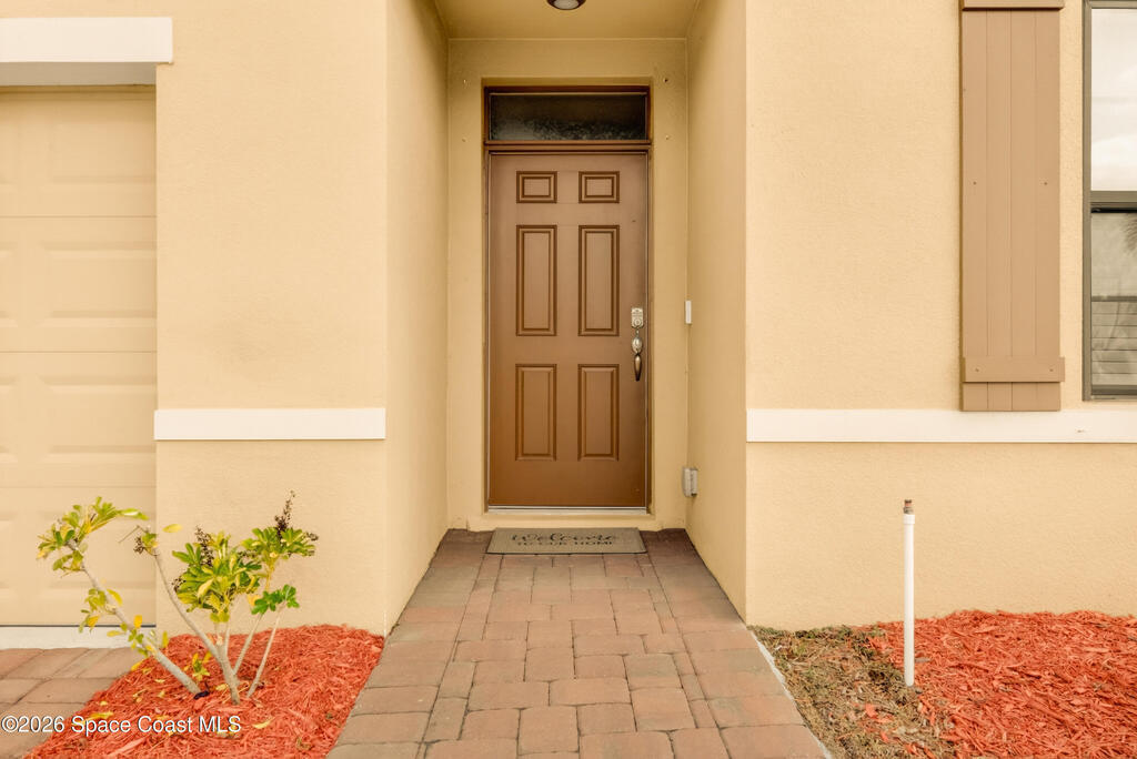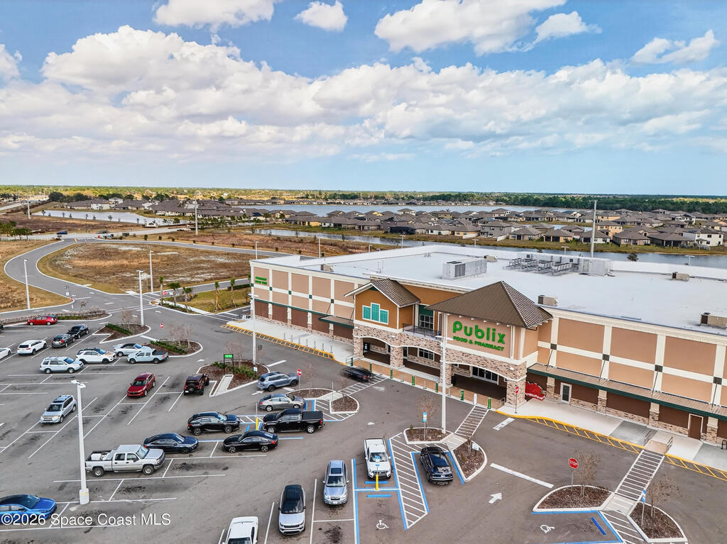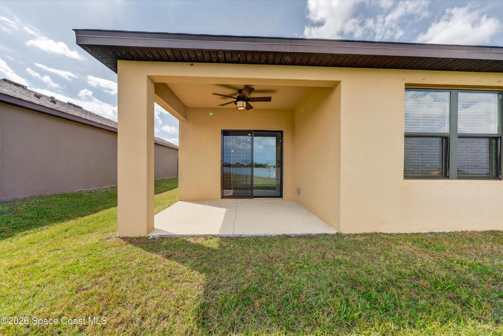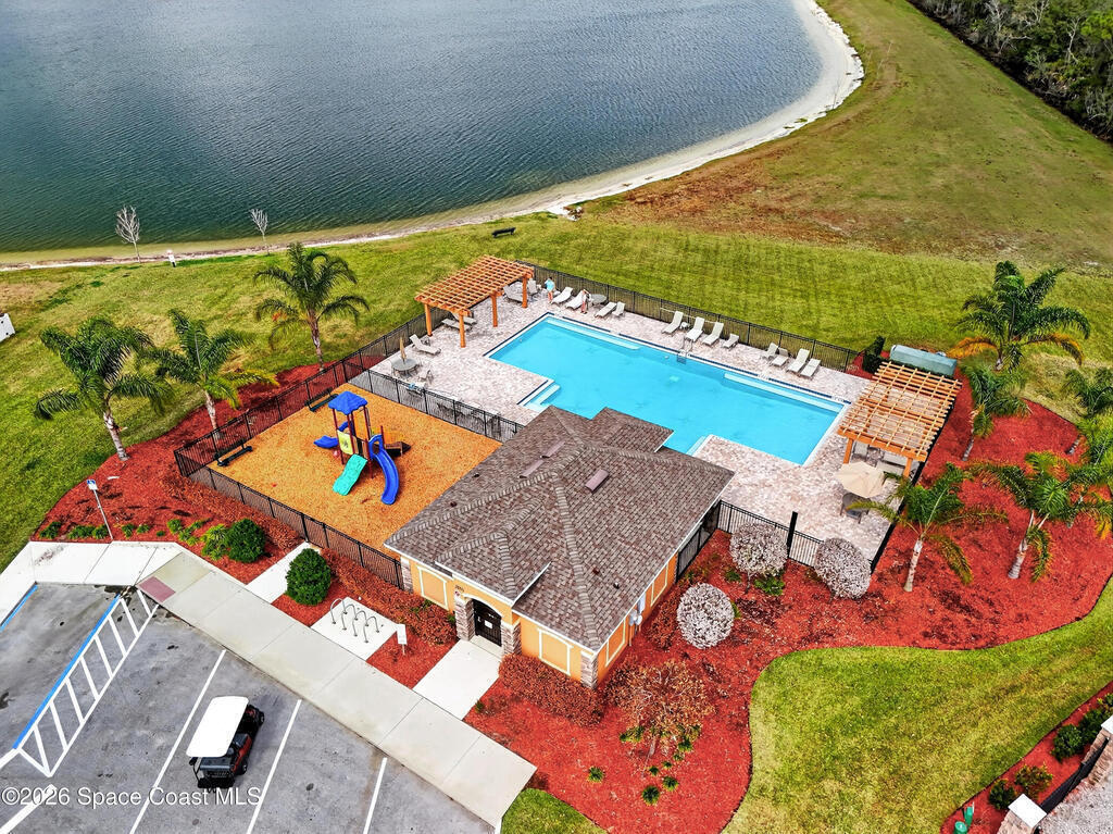 Don't wait for new construction to be completed. This 2023-built home is move-in ready. Offering 4 bedrooms and a thoughtfully designed split floorplan, the layout provides functional separation while maintaining an open flow between the kitchen, dining, and living areas. Natural light fills the space, and peaceful pond views can be enjoyed from the main living areas. The kitchen features upgraded finishes, including a newer sink, and overlooks the central gathering spaces. Neutral interior tones create a clean, move-in-ready environment. Located within a gated community in Southeast Palm Bay, residents have access to community amenities, including a pool and park area, all within a short distance from the home. Convenient access to major roadways, shopping, dining, and everyday services.