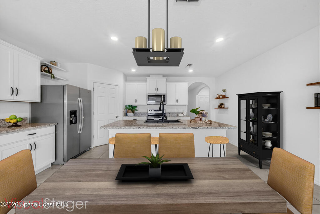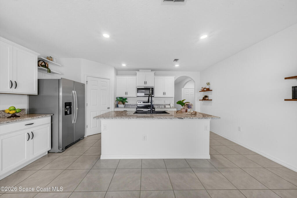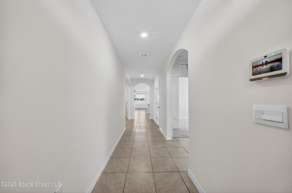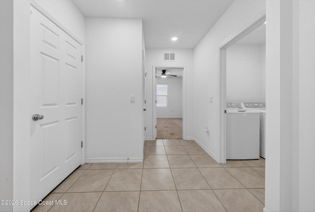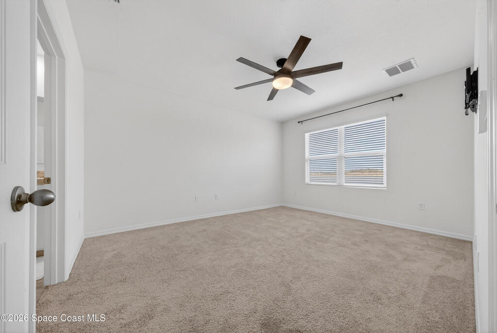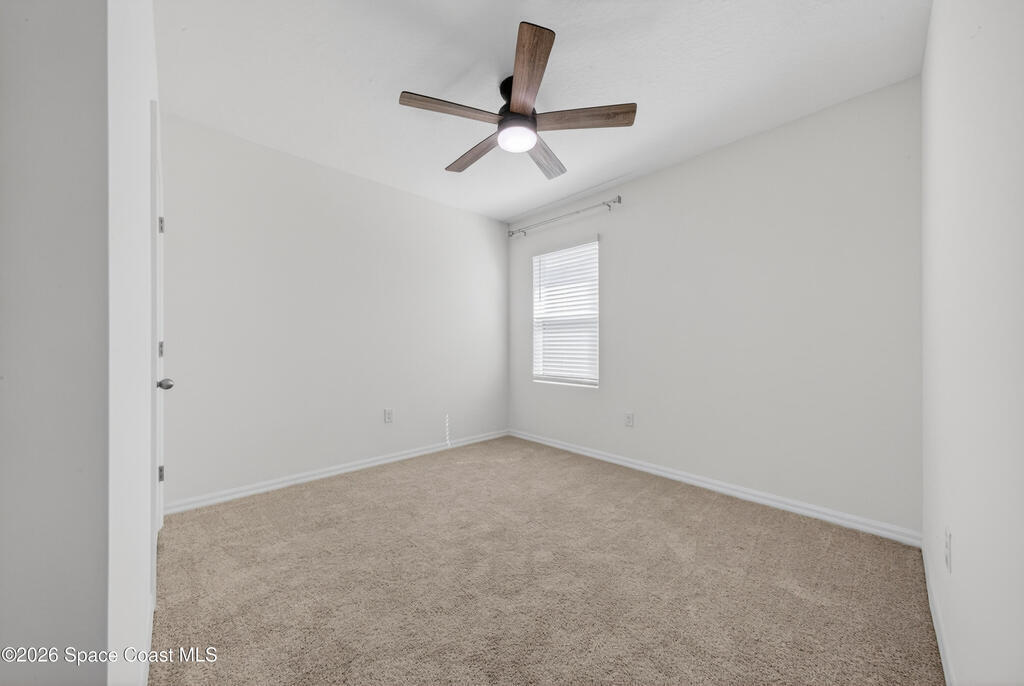 Don't wait for new construction to be completed. This 2023-built home is move-in ready. Offering 4 bedrooms and a thoughtfully designed split floorplan, the layout provides functional separation while maintaining an open flow between the kitchen, dining, and living areas. Natural light fills the space, and peaceful pond views can be enjoyed from the main living areas. The kitchen features upgraded finishes, including a newer sink, and overlooks the central gathering spaces. Neutral interior tones create a clean, move-in-ready environment. Located within a gated community in Southeast Palm Bay, residents have access to community amenities, including a pool and park area, all within a short distance from the home. Convenient access to major roadways, shopping, dining, and everyday services.