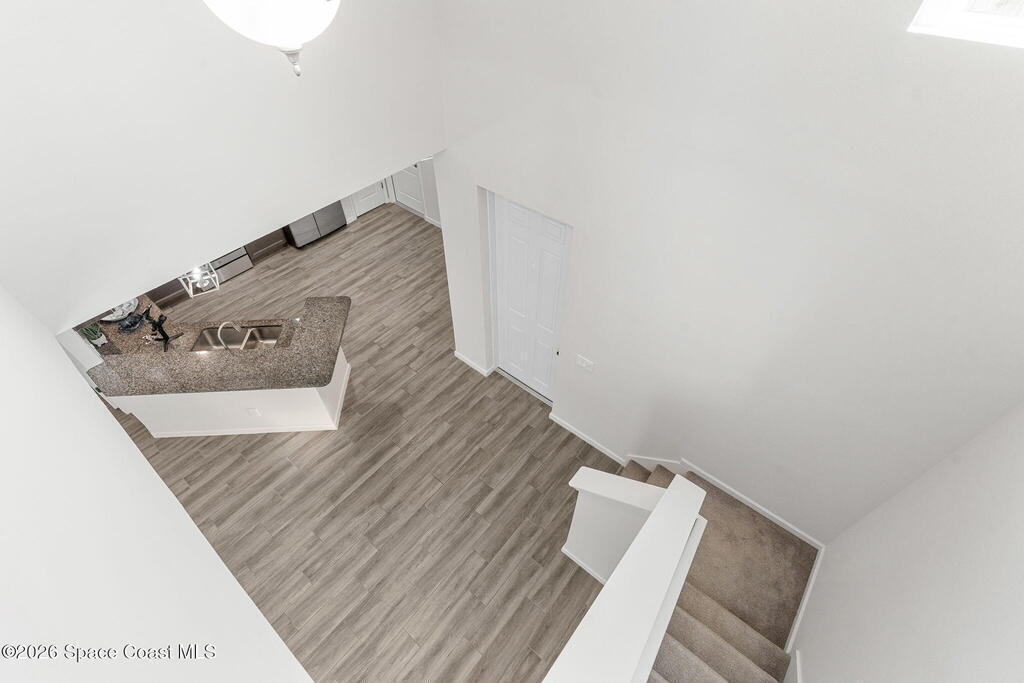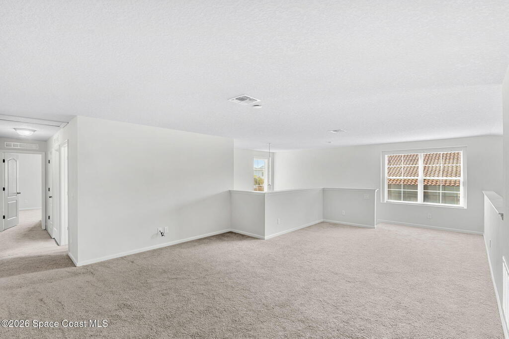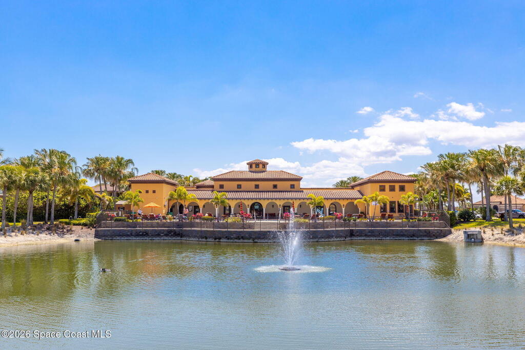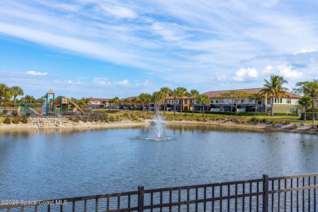 BIG lakefront, end-unit townhome in Montecito, Satellite Beach just steps to the ocean! Built in 2019 with a 4-foot full side extension, this extra-wide home offers over 2,400 SF of bright, open living space with soaring vaulted ceilings. First-floor primary suite features lake views, vaulted ceiling, double vanities, and a walk-in shower. Upstairs includes 2 bedrooms and a HUGE loft. Enjoy a 2-car garage, downstairs laundry, powder room, and abundant storage. Wood-look tile floors, gorgeous kitchen, and open-concept design make this home impressive. Interior freshly painted. Covered porch overlooking the lake. Montecito is a Mediterranean-inspired seaside community w/ resort-style amenities: clubhouse, pool, fitness center, playground. Golf cart to nearby public beach access, restaurants, Publix, and the Indian River. Minutes to Costco, Trader Joe's, top schools, Pineda Cswy, and I-95. Close to Northrop Grumman, L3Harris, KSC, Blue Origin, SpaceX. LOW HOA:$239/quarter! Move right in!