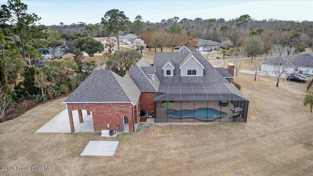 Experience space, privacy, and luxury in this stunning 6 bedroom, 5 bathroom pool home on 1.09 acres! With 4,155 square feet of living space, this thoughtfully designed residence offers room for everyone. The primary suite is conveniently located on the first floor, creating a private retreat with easy access to the main living areas. Need more flexibility? There's an option to create an additional first floor in law suite or flex space, complete with its own private bath-perfect for guests or multi-generational living. Step outside to enjoy the beautiful 2-year-old pool, ideal for relaxing or entertaining, all surrounded by peaceful nature views. The expansive wrap-around porch invites you to unwind and take in the serene setting. Tucked away on a quiet cul-de-sac, yet just 35 minutes from Orlando International Airport, this home offers the perfect blend of tranquility and convenience. Close to beaches, shopping, schools, and everything you want in a Florida home!