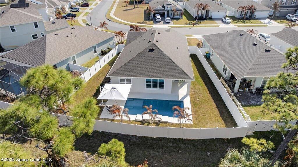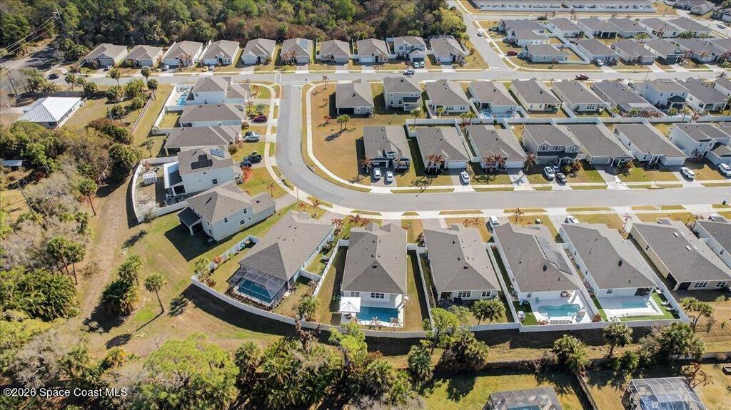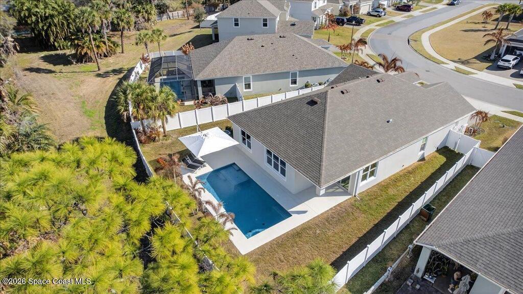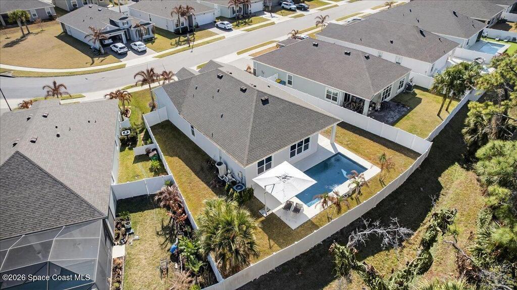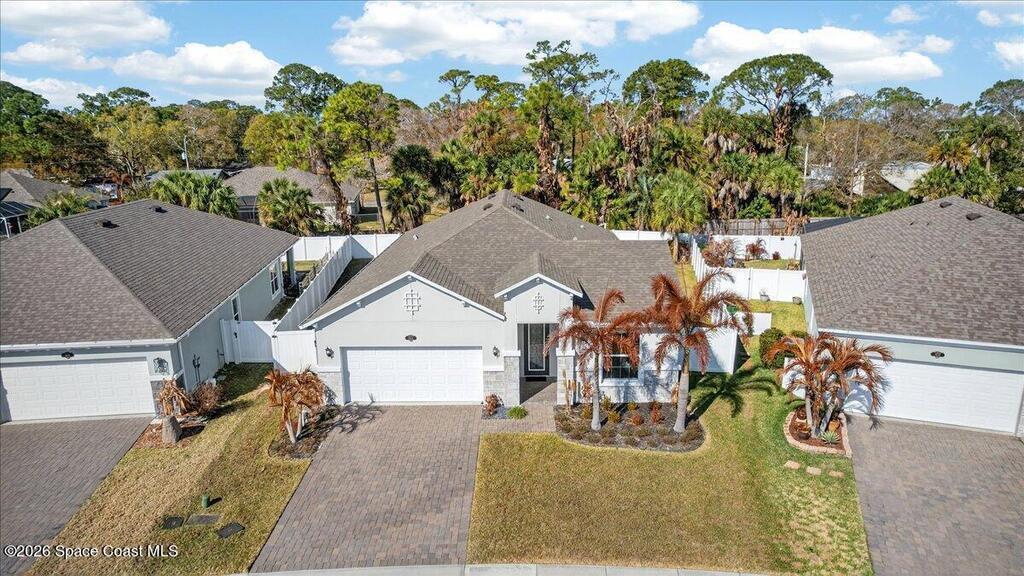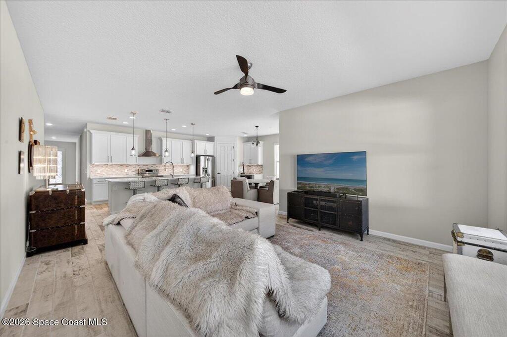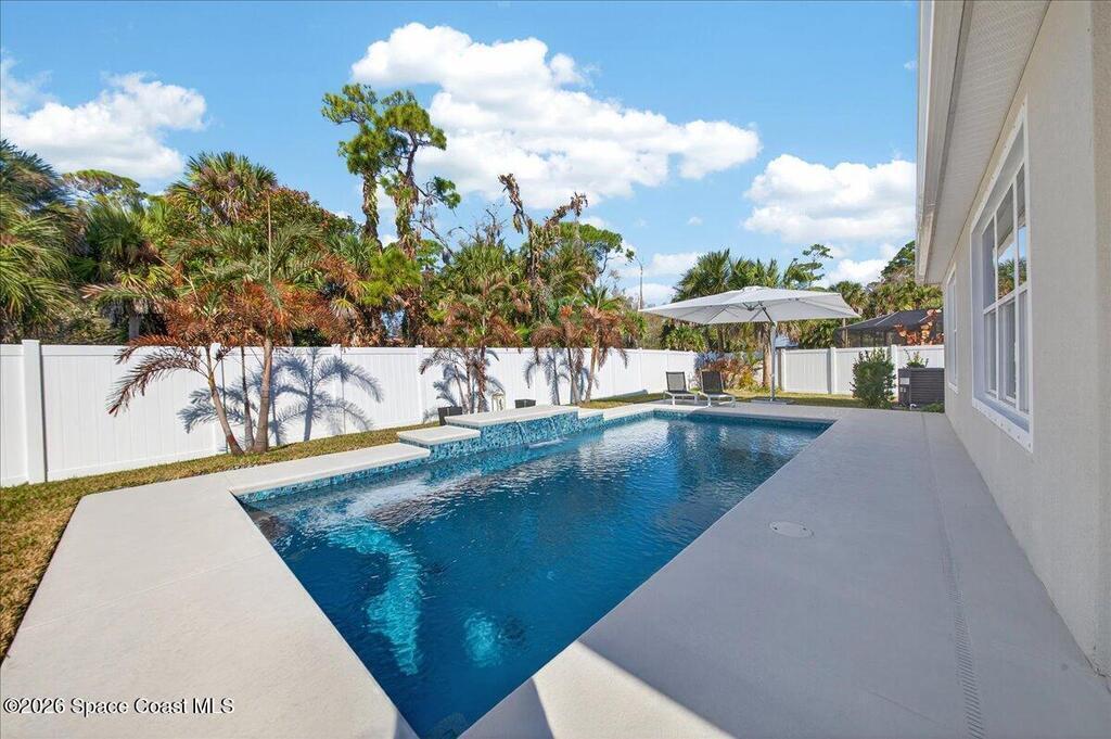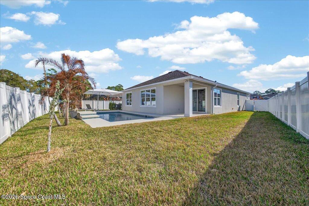 Welcome to gated living in the heart of West Melbourne! Built in 2021, this 4BR/2BA home offers just under 2,000 sq ft of thoughtfully designed space with soaring ceilings and 8' doors throughout. The split floor plan features beautiful wood-look tile floors and an open-concept layout perfect for entertaining. The chef's kitchen boasts an oversized island, white shaker cabinets, quartz countertops, tile backsplash, stainless appliances and a wine fridge. The spacious primary suite overlooks the backyard oasis and includes a dream-worthy walk-in closet with custom built-ins. Step outside to your fully fenced yard with a stunning saltwater pool complete with waterfall and electric heater. Close to major employers, shopping, dining and just minutes to the beaches!