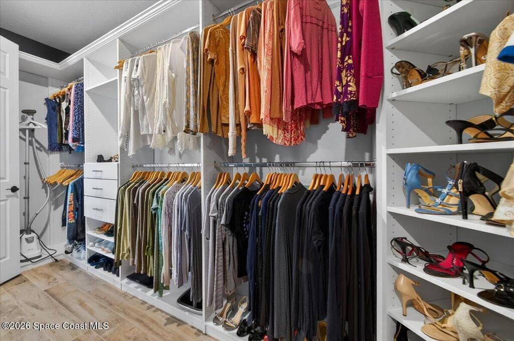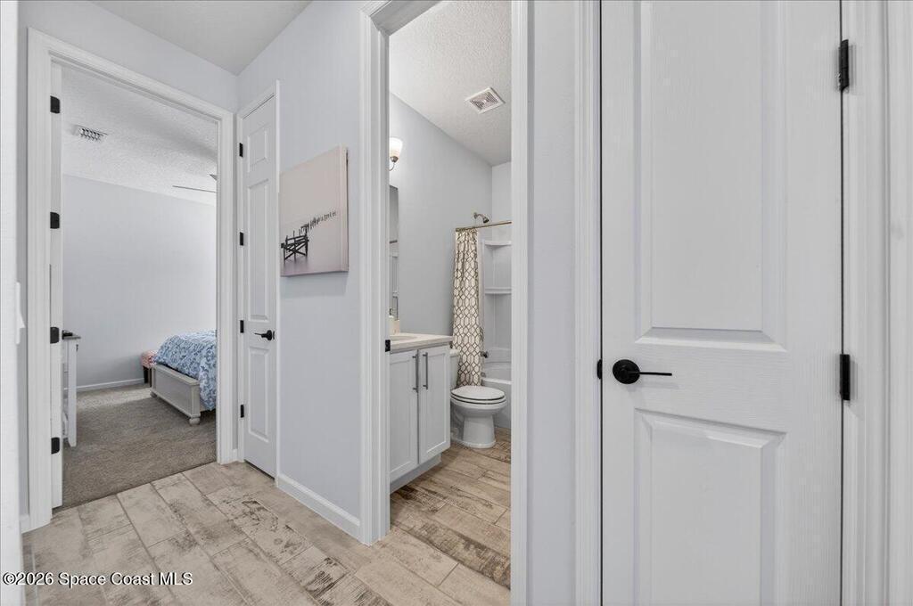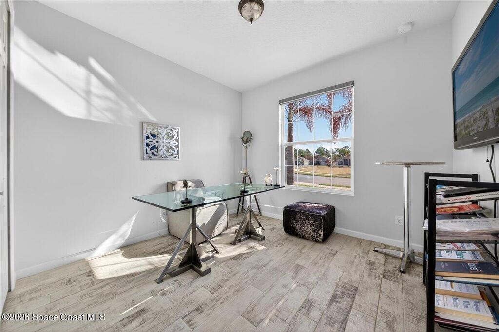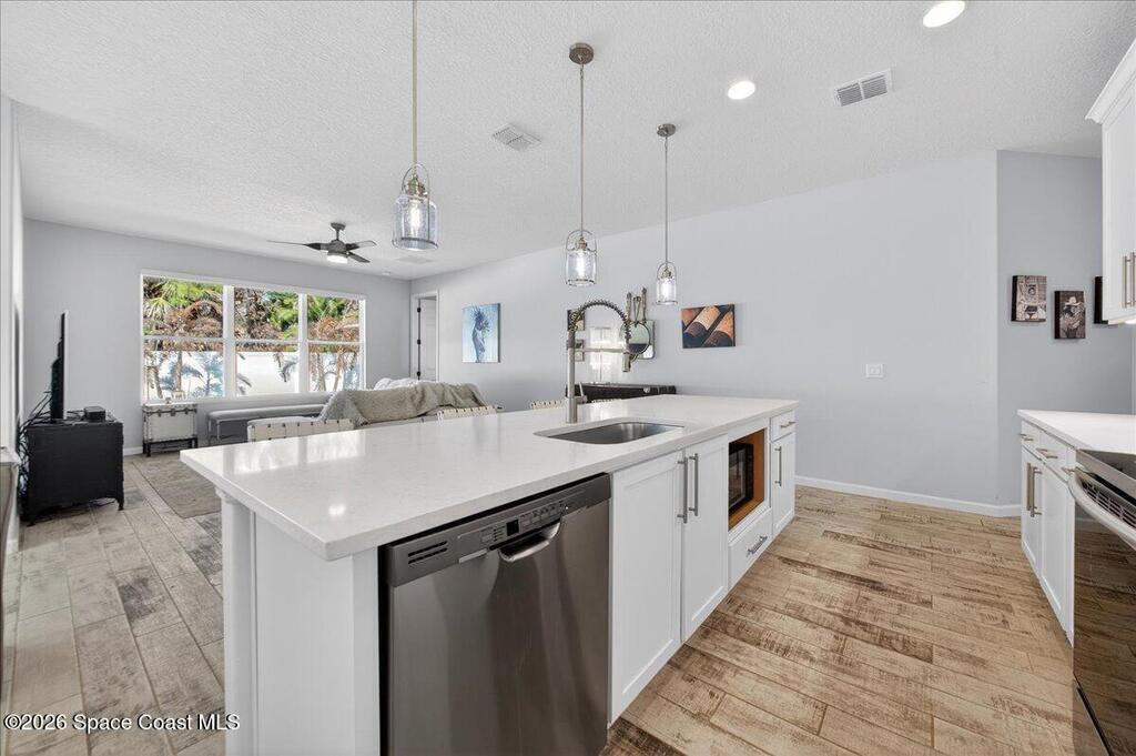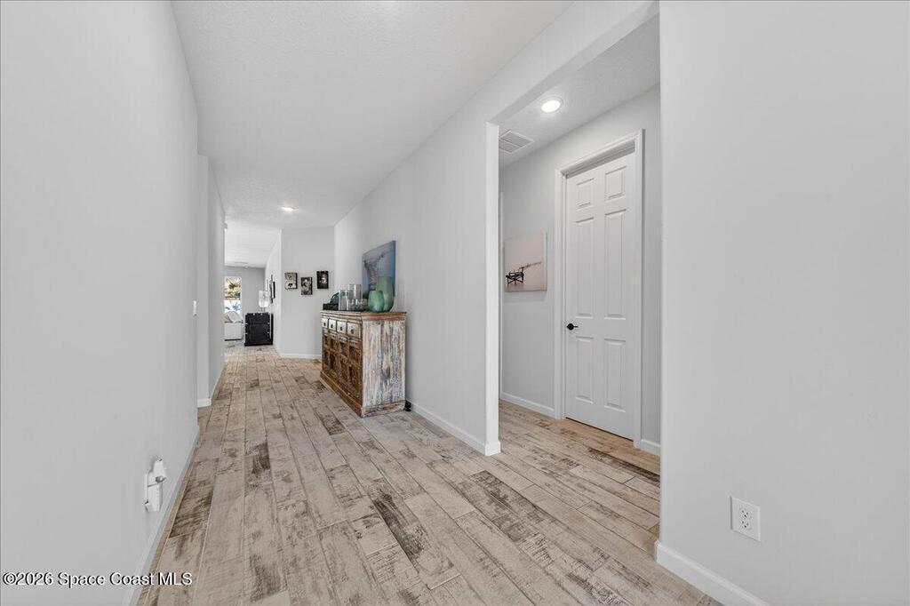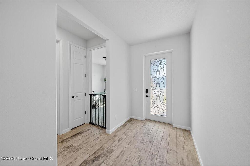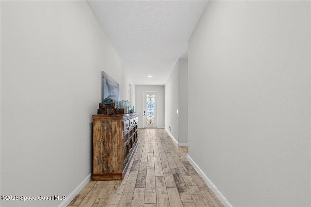 Welcome to gated living in the heart of West Melbourne! Built in 2021, this 4BR/2BA home offers just under 2,000 sq ft of thoughtfully designed space with soaring ceilings and 8' doors throughout. The split floor plan features beautiful wood-look tile floors and an open-concept layout perfect for entertaining. The chef's kitchen boasts an oversized island, white shaker cabinets, quartz countertops, tile backsplash, stainless appliances and a wine fridge. The spacious primary suite overlooks the backyard oasis and includes a dream-worthy walk-in closet with custom built-ins. Step outside to your fully fenced yard with a stunning saltwater pool complete with waterfall and electric heater. Close to major employers, shopping, dining and just minutes to the beaches!