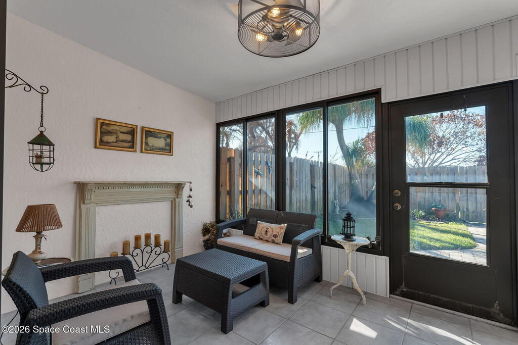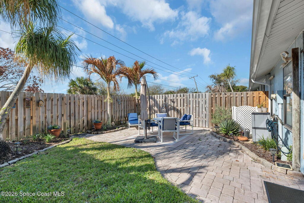 Beautiful, updated 2 bedroom, 2 bathroom townhouse featuring tile flooring throughout the main living areas and carpet in the bedrooms. The kitchen offers granite countertops and updated finishes.Enjoy an enclosed rear porch with an extended paver patio and fully fenced backyard.The two-car garage includes a partially converted section with electric and AC, ideal for office space, hobby area, or additional storage.Community pool. Excellent location with convenient access to the beach, shopping, and restaurants. Roof 2022.