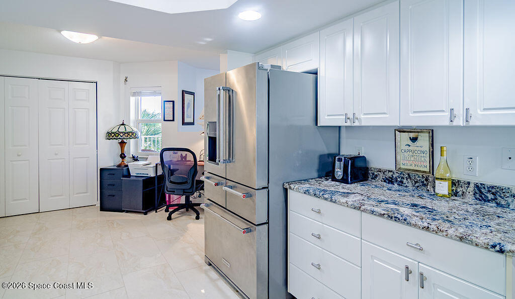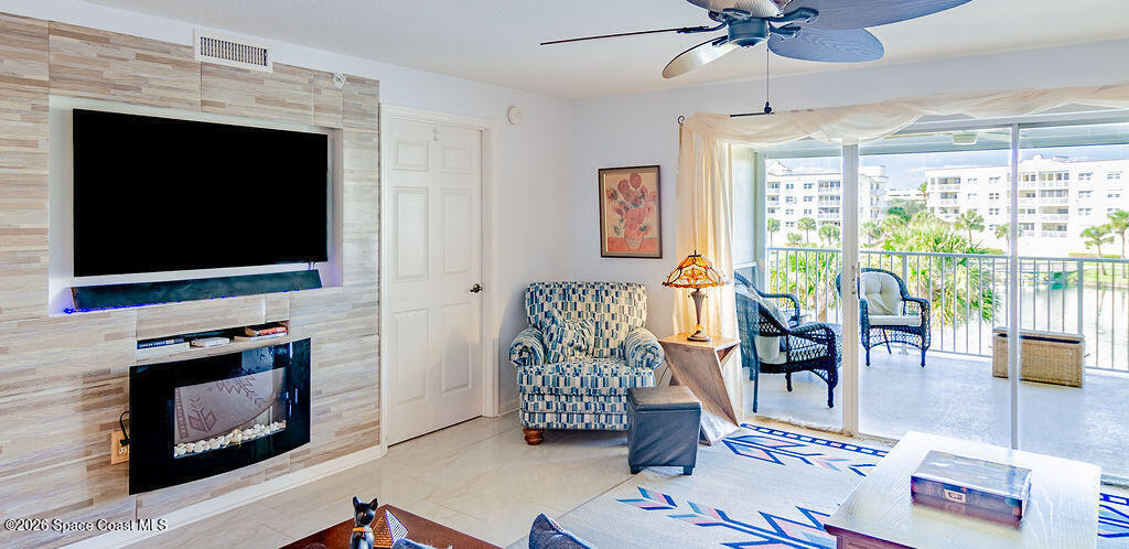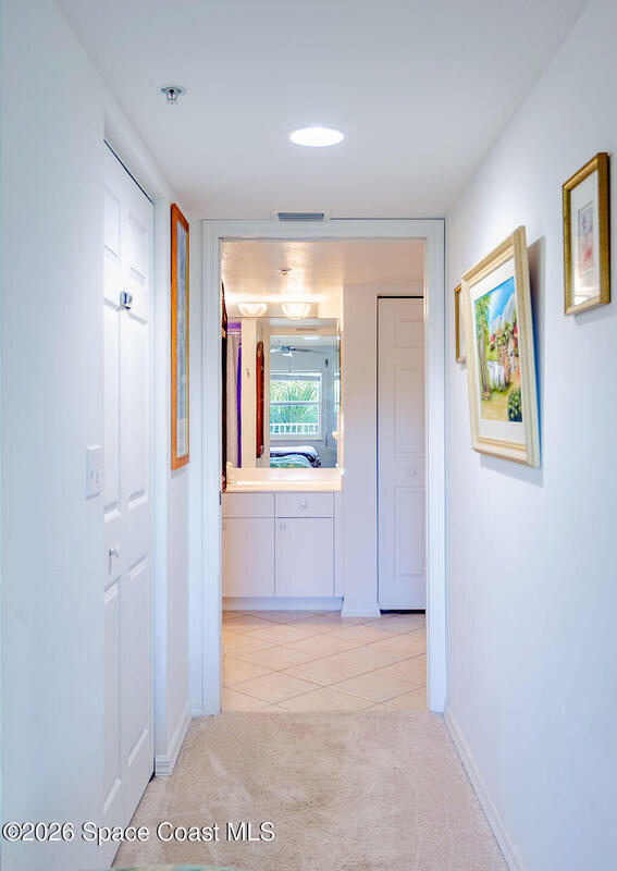Welcome to the highly sought-after waterfront community of Solana Lake, just a stone's throw from the stunning beaches of Cape Canaveral. This desirable third-floor unit offers breathtaking sunset views overlooking the pool and complex, along with an oversized one-car garage. You'll find yourself closest to the expansive heated pool and jacuzzi, with direct water views from your patio. Step inside to discover high-end finishes throughout, including a beautifully renovated kitchen featuring stainless steel appliances, granite countertops, and elegant porcelain tile flooring. The spacious main bedroom and sizable second bedroom provide ample comfort for residents and guests alike.Enjoy the ease of a short stroll to the beach while benefiting from an HOA that covers water, cable/internet, security, and pest control. Fully furnished options are available for a seamless move-in experience. With strong financials and healthy reserves, this property can be your own piece of paradise!