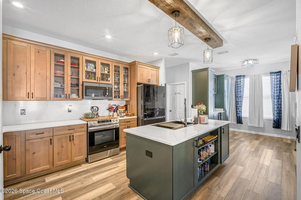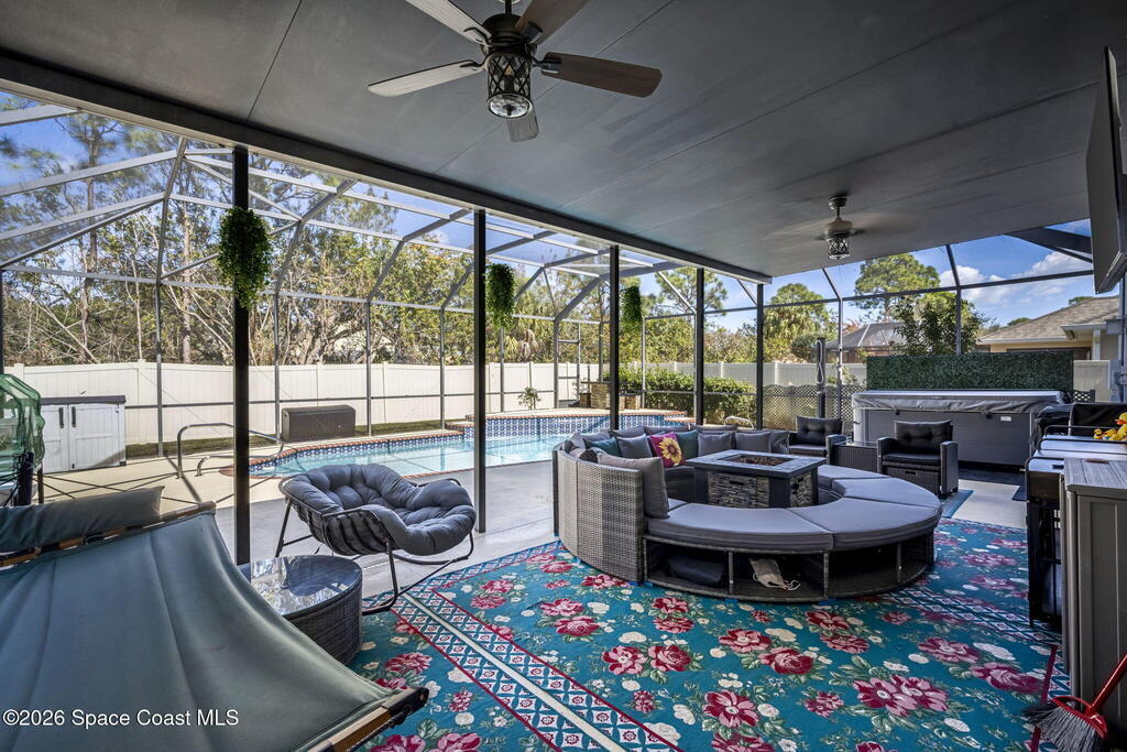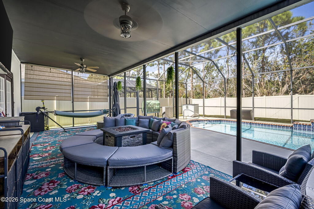 Make this home yours! This spacious 5BR/4BA home with 3,654 SF and a 3-car garage is located in the gated community of Holly Trace at Bayside Lakes. Beautifully updated featuring a fully remodeled kitchen (Jan 2026), all-new appliances, custom cabinetry, new counters, and custom eat-in area. Fresh interior paint (2023), new vinyl flooring throughout, updated electrical, and two electric fireplaces. Upstairs primary suite offers a private sitting area, spa bath, and two walk-in closets. Spacious loft upstairs. Enjoy the private fenced yard with a saltwater pool (new system) and hot tub. Additional upgrades include new landscaping, exterior paint (2025), resealed driveway (2025), new water heater (2024, 15-yr warranty), and new upstairs AC (Jan 2026). Community amenities include a playground and pool. The overall Bayside Lakes area has a master-planned community with extensive amenities (clubhouse, pool, courts, trails). Schedule a showing today