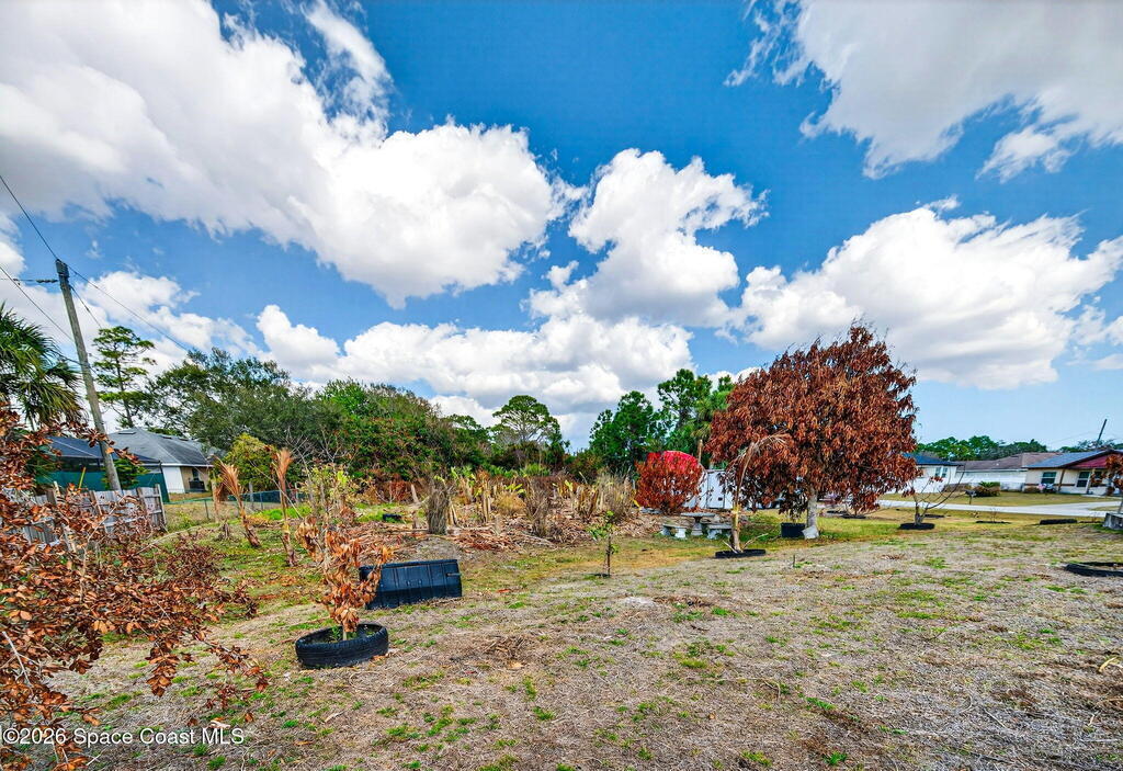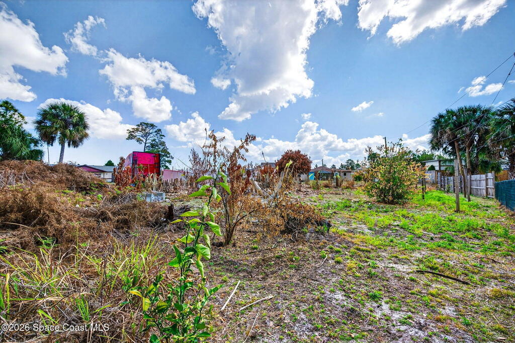 Large lot on a quiet street in Palm Bay! This 3-bedroom, 2-bath concrete block home sits on .28 acres and includes the adjacent .27-acre lot with its own separate legal description. Build a second home for rental income, create a multi-generational property, or sell the lot for extra cash! Prefer extra space? Design your own garden oasis, grow fruits and vegetables, or simply enjoy the added privacy. The backyard features a wood-burning concrete fire pit with an overhang -- perfect for entertaining and family gatherings. Endless potential in a peaceful location!