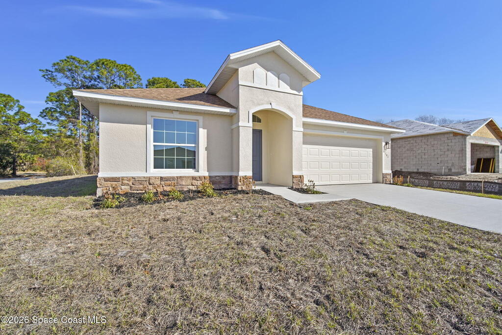 3% SELLER CONCESSIONS! NO HOA! Luxury living at an affordable price! With 1794 SQFT of living space, to include four spacious bedrooms and two elegant bathrooms, this corner lot home offers ample space for both relaxation and entertainment. The open-concept features a modernized kitchen, complete w/ 42'' upper cabinets, Samsung stainless steel appliances, large island, dry bar, & highlighted with quartz countertops. The master suite boasts an upscale bathroom, with Corian solid surface counters, custom fixtures, and standalone shower w/accented tile and flooring. Additional bedrooms are generously sized, ideal for guests or a home office. Other features are custom tile throughout (NO CARPET!), custom efficient fixtures and LED lighting, prewire for fans in all bedrooms, storm shutters, double pane windows, hurricane rated garage door, and covered lanai patio for outdoor gatherings. This home is on city water and septic. 1 yr bumper to bumper/2-10 Builder warranty included.