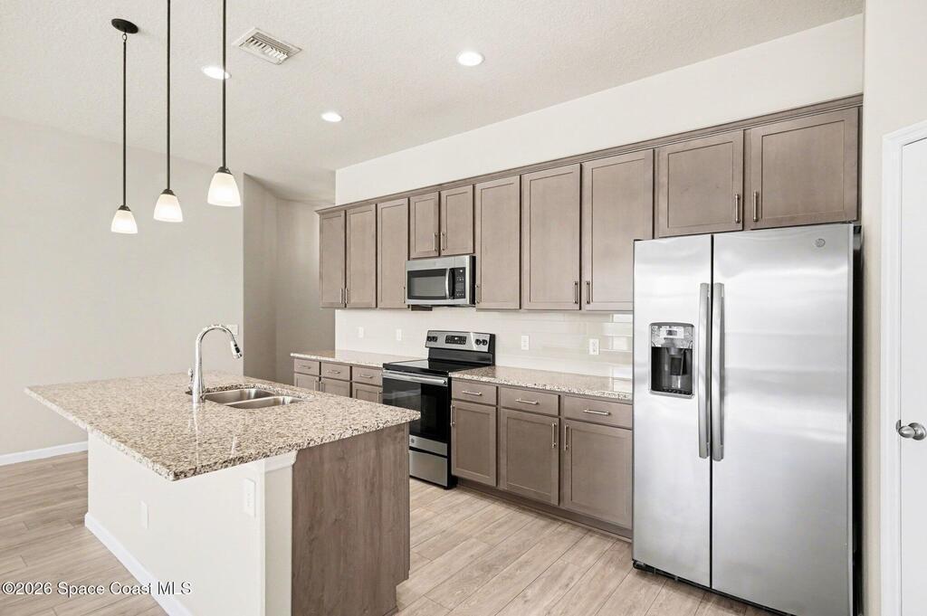 Seller to install BRAND NEW ROOF prior to closing. Impeccably maintained and truly showing like new, this stunning West Melbourne home backs to a serene preserve, offering rare privacy with no rear neighbors. This move-in ready floor plan features a stone-accented exterior, split-bedroom design, and bright, open living spaces ideal for everyday comfort and entertaining. The kitchen showcases granite countertops and a walk-in pantry, flowing seamlessly into the main living areas. The spacious primary suite offers a spa-like bath with soaking tub, separate shower, dual vanities, and walk-in closet. Enjoy upgraded finishes throughout and convenient access to parks, shopping, dining, and I-95.