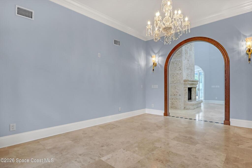 Welcome to your slice of paradise in the prestigious guard-gated community of Tortoise Island. This stunning executive waterfront home offers the perfect blend of luxury, comfort, and modern upgrades throughout. Featuring six spacious bedrooms and four stylish bathrooms, including a serene primary suite with custom-designed closets, the home is thoughtfully designed for both relaxation and functionality. The open living and dining areas, highlighted by a charming fireplace, create an inviting atmosphere ideal for entertaining. A versatile office or library and a sunroom with breathtaking water views provide exceptional spaces for both work and leisure.Enjoy the ultimate Florida lifestyle with waterfront living, private outdoor spaces, and access to one of Satellite Beach's