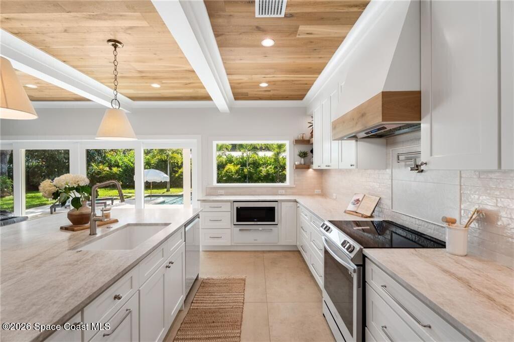 Effective age built 2020! Completely reinvented CBS masterpiece nestled between the Indian River & Atlantic Ocean. Design led custom finishes & architectural details, every inch thoughtfully designed & engineered to perfection. Oversized lot(.33) w/ lush landscaping and mature oaks. This 4 bed/3 bath, 3,364 sq ft home split/open floor plan w/ tons of storage. Features include: 25' custom resort-style pool & spa, 22' roof, spray foam ins., impact windows/doors, fenced in backyard, all new electric, plumbing, & Step system. A/C 22', 25' irrigation system. No HOA/take your boat to the marina!