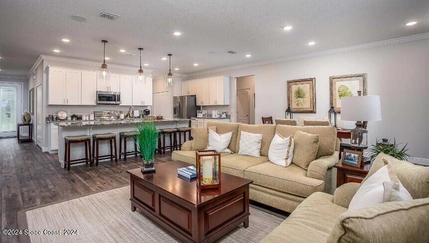 Pre-Construction. To Be Built. Located in the peaceful and growing community of Vero Lake Estates, the Wilmington reflects a true country-suburban lifestyle with spacious homesites and quiet grid-lined streets. The setting provides privacy and space while remaining close to everyday conveniences. With no HOA or CDD fees, the neighborhood maintains a custom, individual feel that stands apart from traditional subdivisions.A covered front porch welcomes you into the Wilmington, leading to an elegant entry highlighted by 9'4'' ceilings and crown molding throughout, creating a bright and refined first impression. Ceramic tile flooring extends throughout the entire home, complemented by upgraded door hardware for a cohesive finish. Just off the foyer, a private den with double French glass doors provides a flexible space for a home office, study, or additional living area.