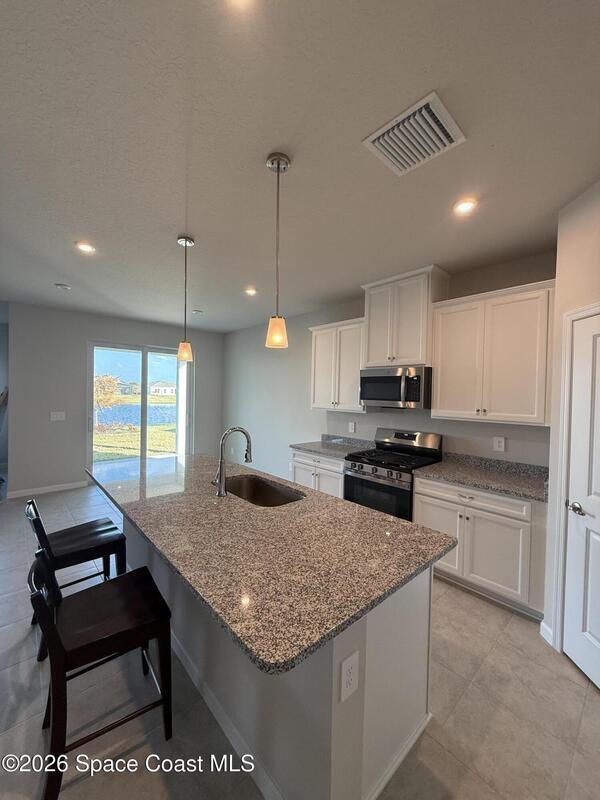 Move in ready now no waiting. Lake front 4 bedroom home with 3 car garage in ''The Spirit of Sebastian'' minutes from the beach. Discover your dream home in the esteemed Agrihood of Spirit of Sebastian, a gated community that embodies the perfect blend of serenity & luxury. This stunning, newly built home boasts tile flooring throughout, tankless HWH, gas 5 burner stove, impact glass, full gutters & pendant lighting in kitchen. Community offers trash collection & complimentary weekly vegetables. HOA covers private lawn care & amenities like clubhouse, pickleball facilities & secure gated entry.
