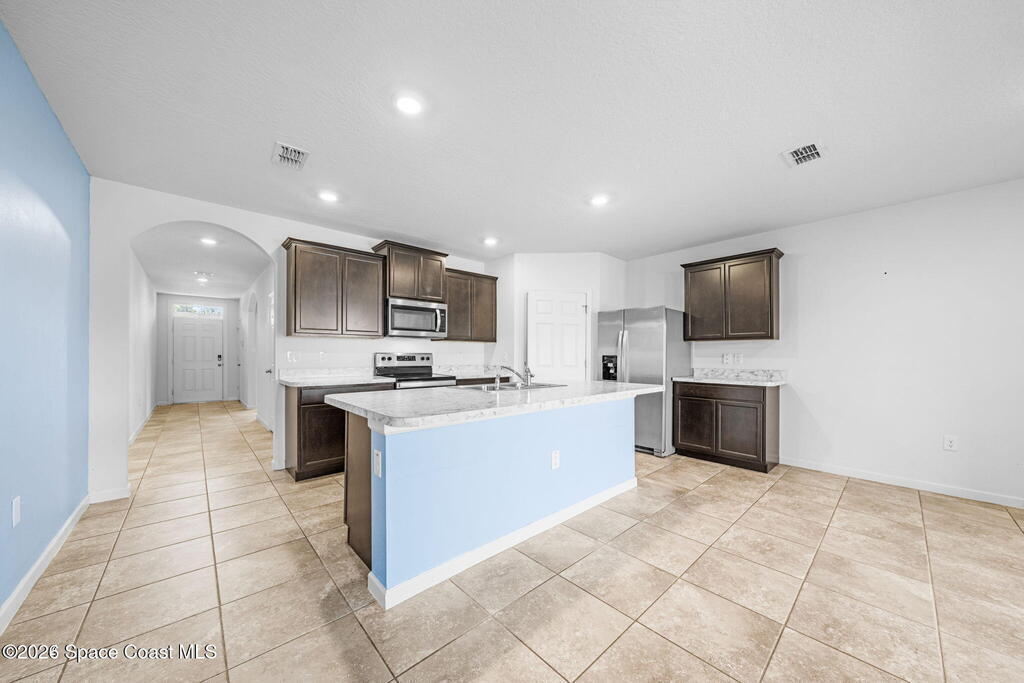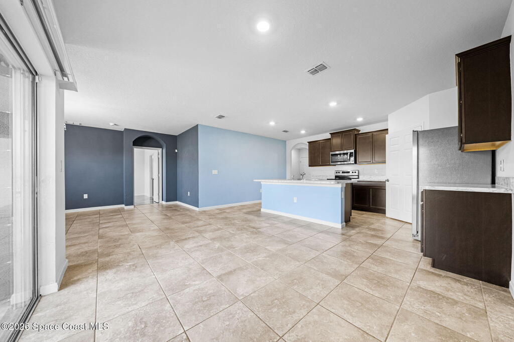 Welcome to 549 Lafayette St SW, Palm Bay, FL 32908 - a stylish 4-bedroom, 2-bathroom solar-powered home built in 2021, offering 2,395 total sqft and 1,828 living sq. ft. of modern space. The open floor plan includes a spacious kitchen with stainless steel appliances and a large island, perfect for entertaining. The master suite features designer tile flooring, a walk-in closet, and a luxurious en-suite bathroom, with another bedroom also boasting designer tile. The remaining bedrooms feature carpet. Builder-grade tile flows throughout the rest of the home. The fully fenced backyard includes a chicken coop, making it ideal for outdoor activities or single-family backyard homestead farming. Additional features include an in-unit washer and dryer. Located near schools, parks, major employers, FIT, and shopping, this move-in-ready gem is easy to show.
