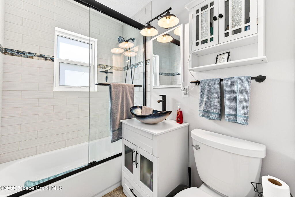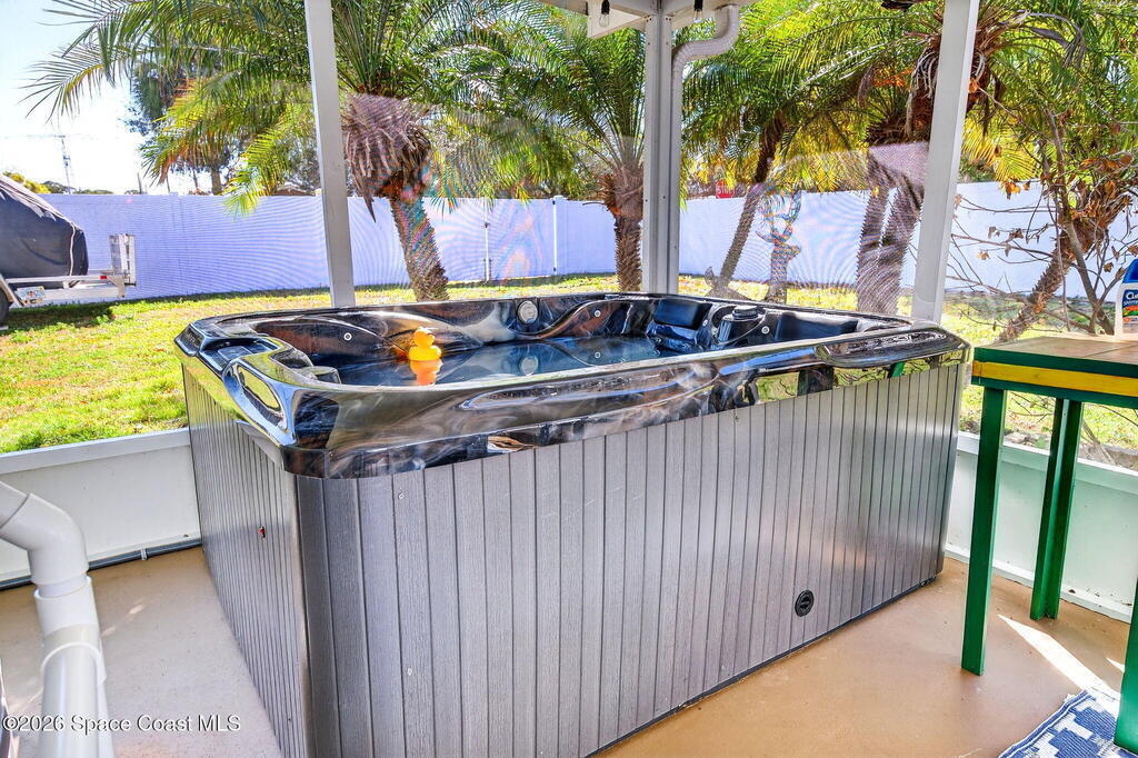 This beautiful corner-lot home in Central Melbourne recently had a complete makeover inside! The corner lot allows plenty of space in your privacy-fenced back yard (w/2 double entry gates) for your boats, RV, dogs & more. Get ready to relax on the back porch in the Hot Tub while you watch TV. The 2021 John Deere mower also conveys! Great location near shopping and dining, the Melbourne International Airport, Golf, minutes to the Beach and more. The open floorplan home has 3 bedrooms, 2 baths, a laundry room off of the kitchen, dining room and an eat-in kitchen. Beautiful bathrooms w/glass doors. The kitchen is roomy with a lot of storage, an eat-in bar and a coffee bar. New impact windows, washer and dryer convey, the extra refrigerator in the laundry room conveys too! There's room for your tools in the 6x10 shed in the back yard. All new vinyl floors, new knock-down ceiling throughout the home.The home has been well maintained and has only had 2 owners! Read more.....
