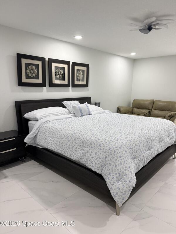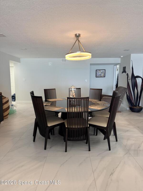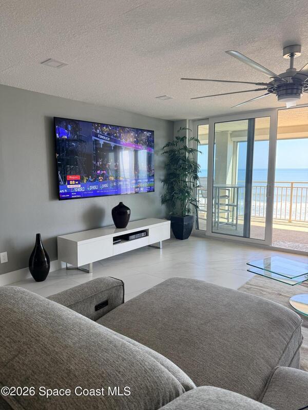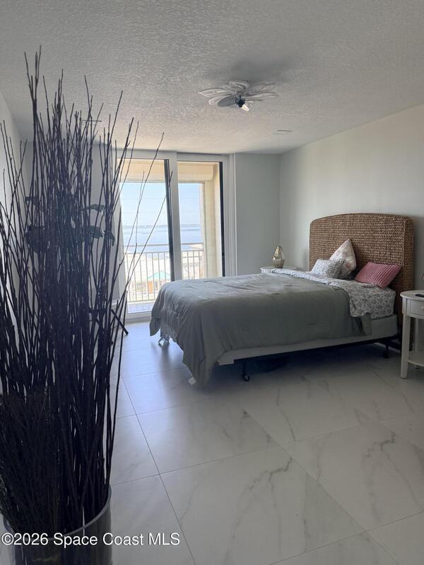 Don't miss this iconic Constellation Condo in Cocoa Beach! This stunning furnished home offers a rare combination of expansive ocean views and breathtaking river vistas--perfect for enjoying both sunrise over the water and spectacular sunset skies each evening. Fully renovated with a sleek, modern design, this home features an impeccable kitchen with crisp white cabinetry, gorgeous granite countertops, stainless steel appliances, an oversized island, and a custom marble backsplash. The open-concept floor plan maximizes natural light and showcases uninterrupted ocean views, complemented by elegant marble tile flooring throughout. The oceanfront primary suite is a private retreat, complete with balcony access and panoramic water views. The spa-inspired en-suite bath boasts a large walk-in shower, whirlpool soaking tub, and double-sink vanity with designer finishes. Residents enjoy private beach access, heated pool, sauna and secure lobby. This is coastal Florida living at its finest!