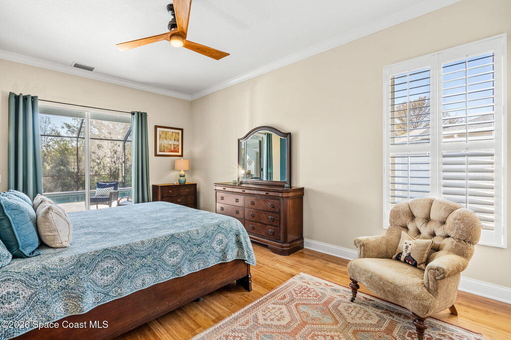Preserve-backed perfection meets everyday function in this fully updated 4 bed + office, 3 bath pool home on a private .26-acre lot. A 2024 kitchen remodel showcases granite countertops & a layout designed for seamless flow into open living spaces framed by crown molding added in 2023. All 3 baths were remodeled in 2024 with cohesive granite finishes, while the 2024 laundry upgrade adds style & efficiency. Tile & bamboo/wood flooring run throughout, blending warmth with durability. Outside, a solar-heated pool with rock waterfall feature anchors the expansive screened enclosure, complete with a covered lanai, hanging swing & generous indoor-outdoor living. PVC fencing, 2024 hardscape/stone surrounds & 2025 exterior lighting elevate curb appeal, all complemented by a spacious 3-car garage.