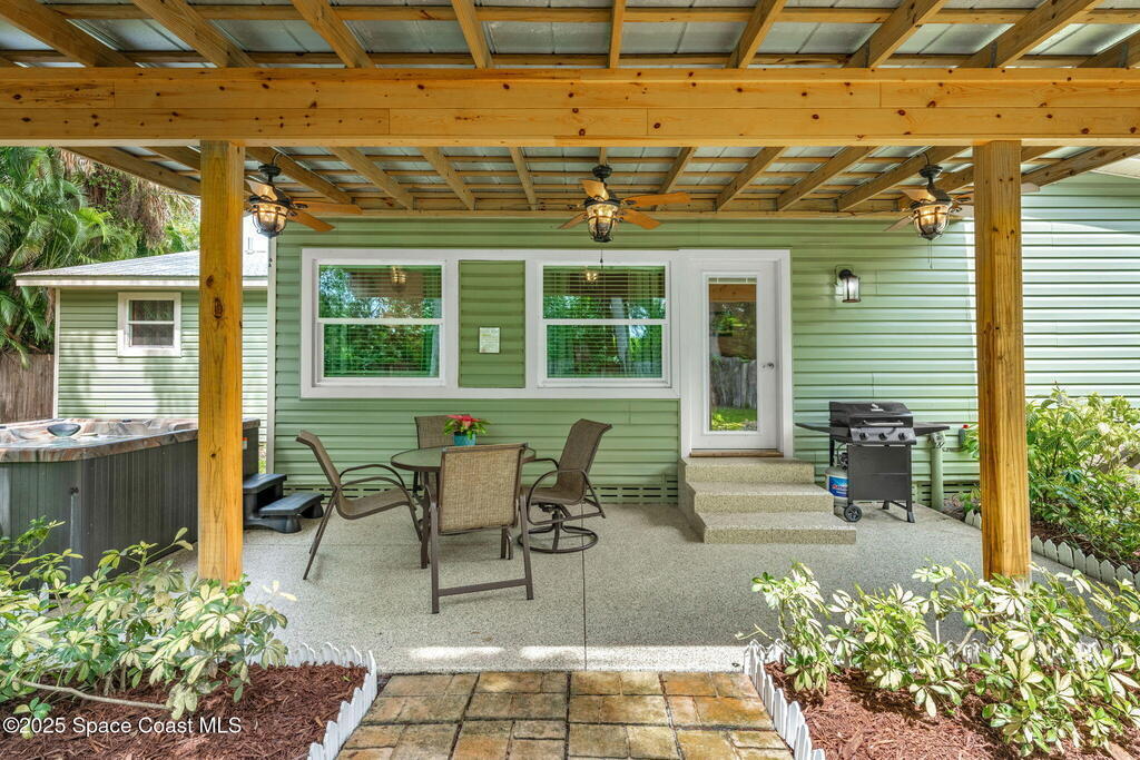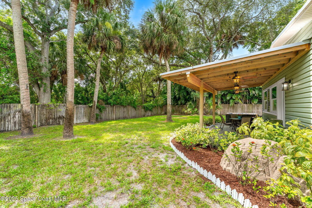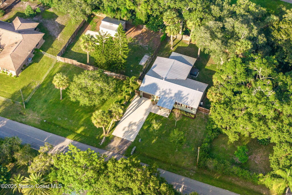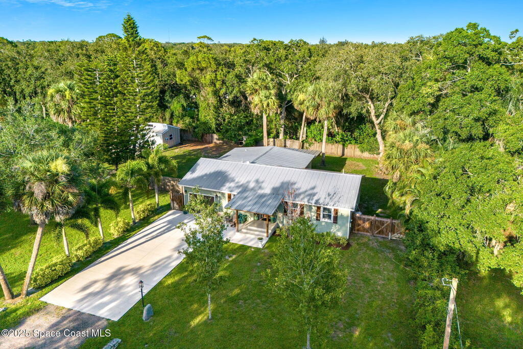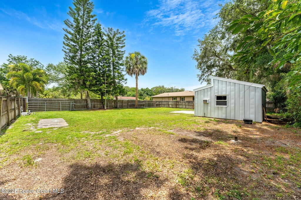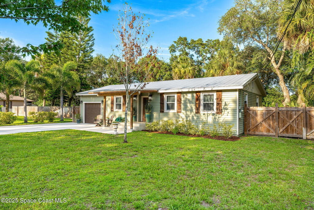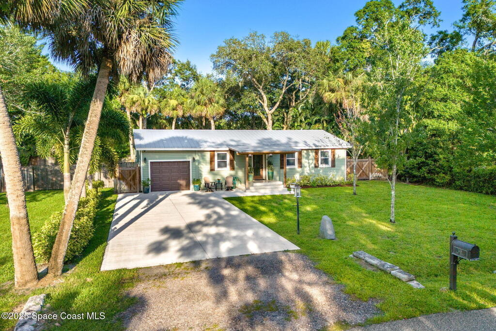 Beautifully renovated and fully furnished, this charming 4BD/2BA home rests on a spacious .52-acre lot w/ the unique opportunity to split the lot and construct an additional residence. Surveys on hand and city approval on setbacks! Loaded w/ updates, Incld crown molding, hardwood pine floors, and impact-rated windows! White cabinetry, SS appliances-2 yrs old, a gas cooktop & a stylish tile backsplash adorn the spacious kitchen. Updated Bathrooms! This split floor plan features a generous back patio, complete w/ a hot tub, perfect for unwinding. The fully fenced yard w/ natural foliage, space for RV/boat parking, plus a large metal shed w/ electricity. Major systems are updated w/ a Nest thermostat, Metal Roof- 2021, HVAC-2025, & New Septic System- 2025. No rental restrictions & the potential to separate the lots and build another home is HUGE! Prime Melbourne location minutes to I-95, Melbourne Int Airport, major employers & beaches! Move-in ready!